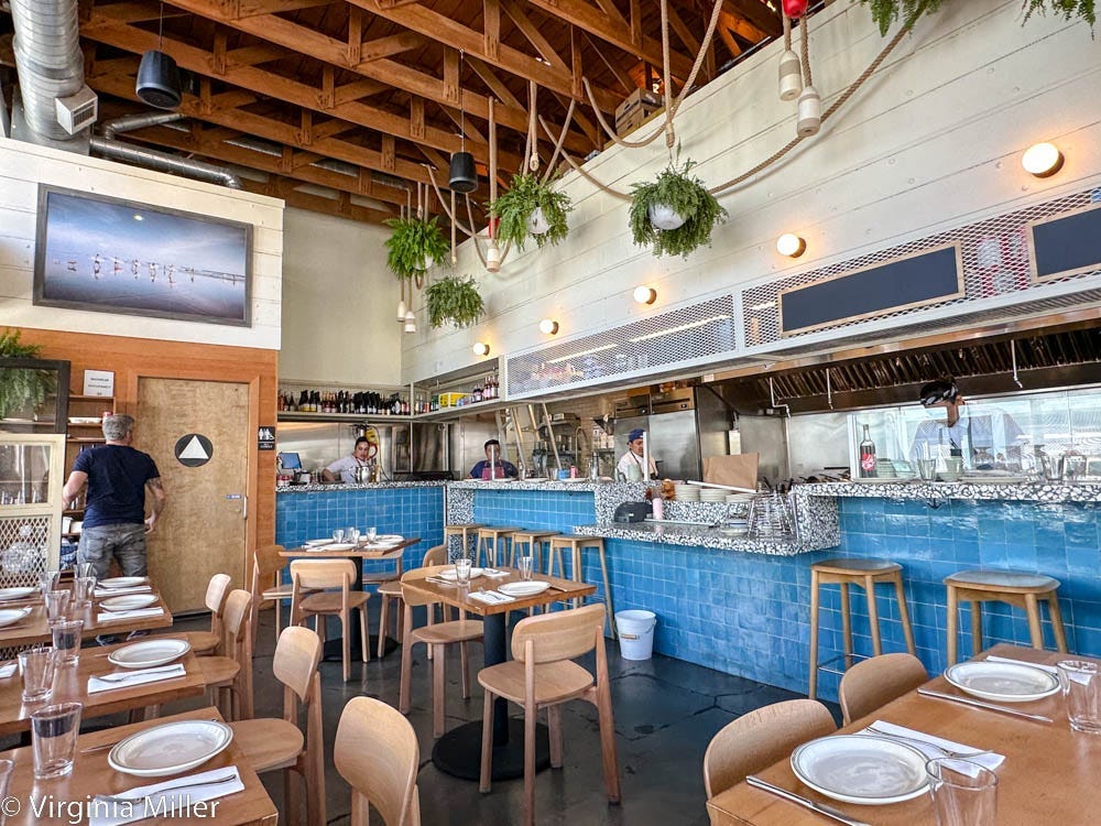 While Popi’s is decidedly SF, West Coast-style seafood house, it has charming echoes of the kind of adorable seafood and oyster bars I adore in Charleston, where I just returned from for my latest research visit, including the ultimate 167 Raw, The Ordinary and The Darling. Popi’s airy little space is marked by windows gazing onto bustling Chestnut Street and their sidewalk seating, by a blue-tiled bar, surfer art and breezy tunes weaving from Queen to Nancy Wilson’s cheeky, “I’m Always Drunk in San Francisco.”