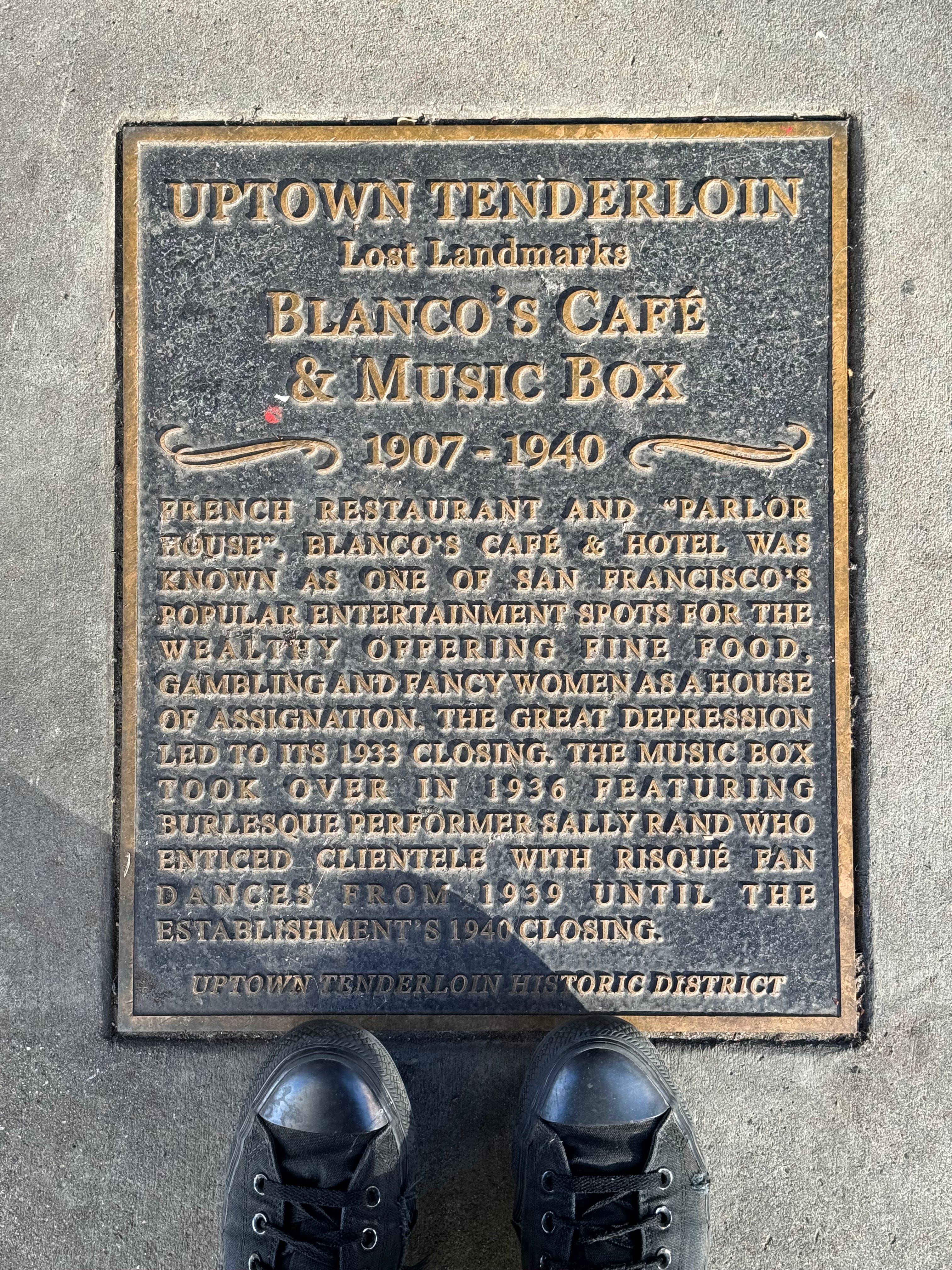 So, too are historical events like the 1906 earthquake and the 1966 Vanguard street sweep, where gay and trans street kids protested the neighborhood police sweeps, supported by Glide Memorial Church, which is thankfully still helping residents today with its many social service programs.