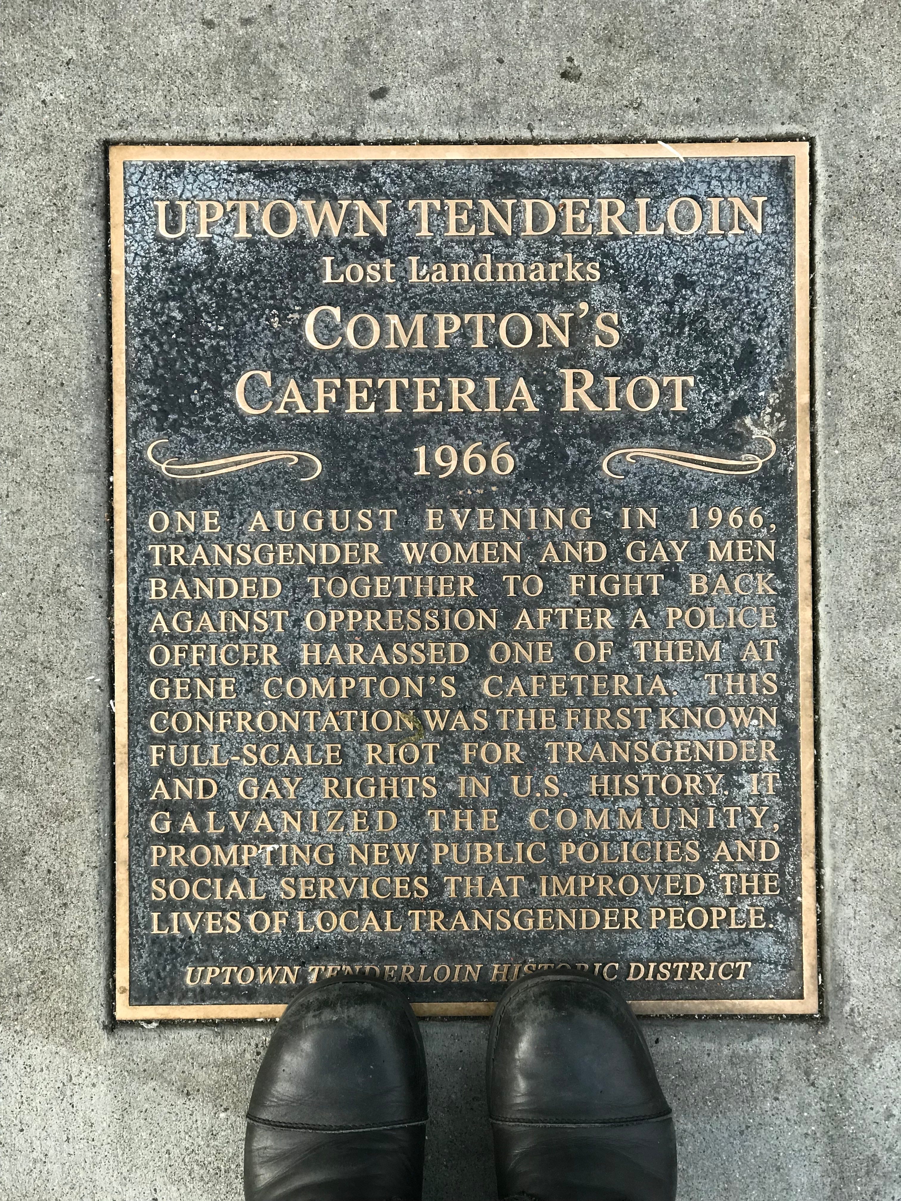 There, the exhibits and wall displays tell rich stories of local history and social resistance, such as the 1966 riots at Compton’s Cafeteria, which, despite predating Stonewall by three years, was nearly lost to history. Only recently has it been recognized as a defining moment in queer liberation, when trans femme sex workers and gay male street hustlers fought back against police harassment. And while this is now commemorated by no less than two plaques at Turk & Taylor, no one is even sure of the exact date it happened.