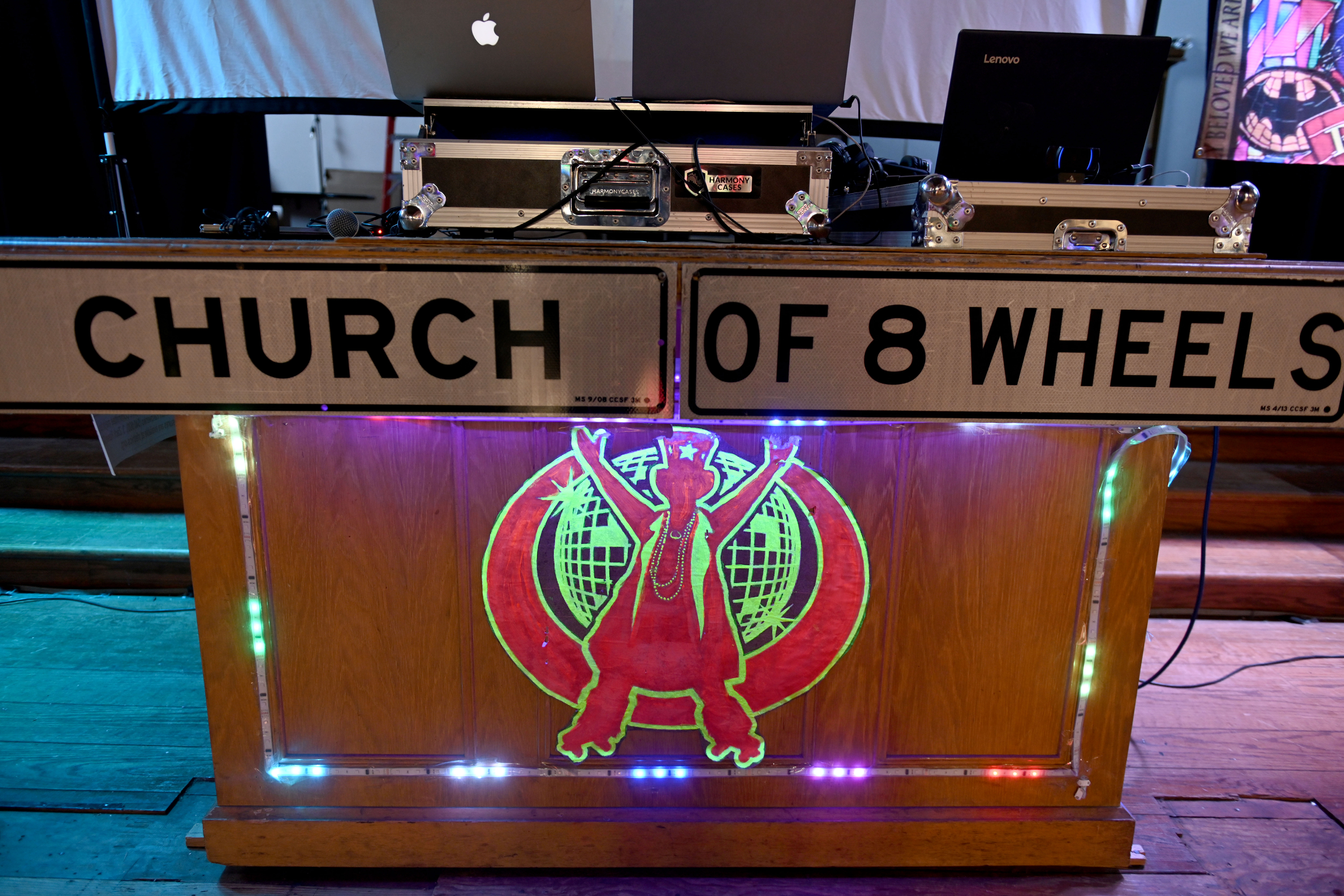 While the atmosphere may be magical, it’s due to very real work by the Miles family. Patriarch David Miles Jr., the aptly named “Godfather of Skate,” dons full purple regalia including a heavy signature top hat as he sits on a chair at the edge of the skating rink for the interview as his daughter, Tiffany Miles, and I sit on a former church pew. Miles Jr. is clearly passionate about roller skating and his family — and a very voracious talker. He speaks at length, some 26 minutes, when I ask him what roller skating means to him.