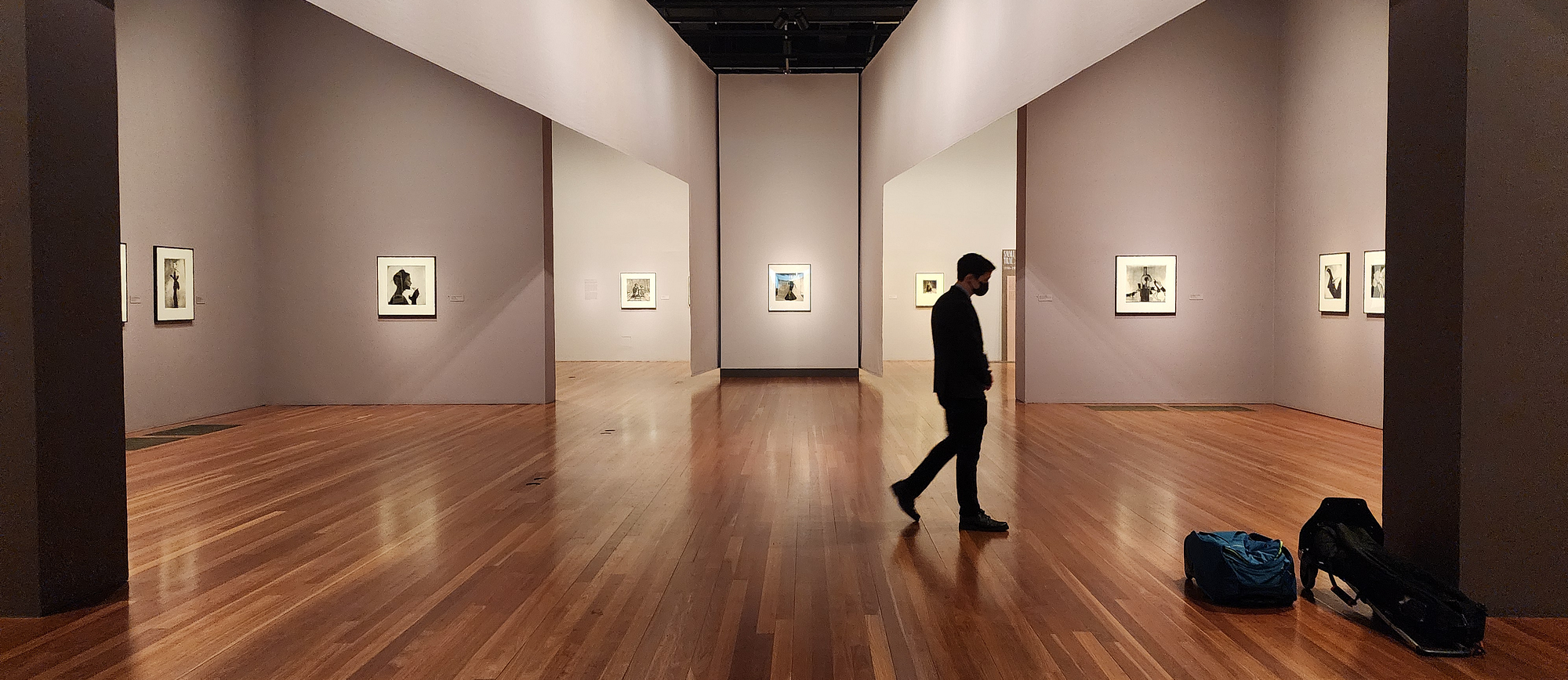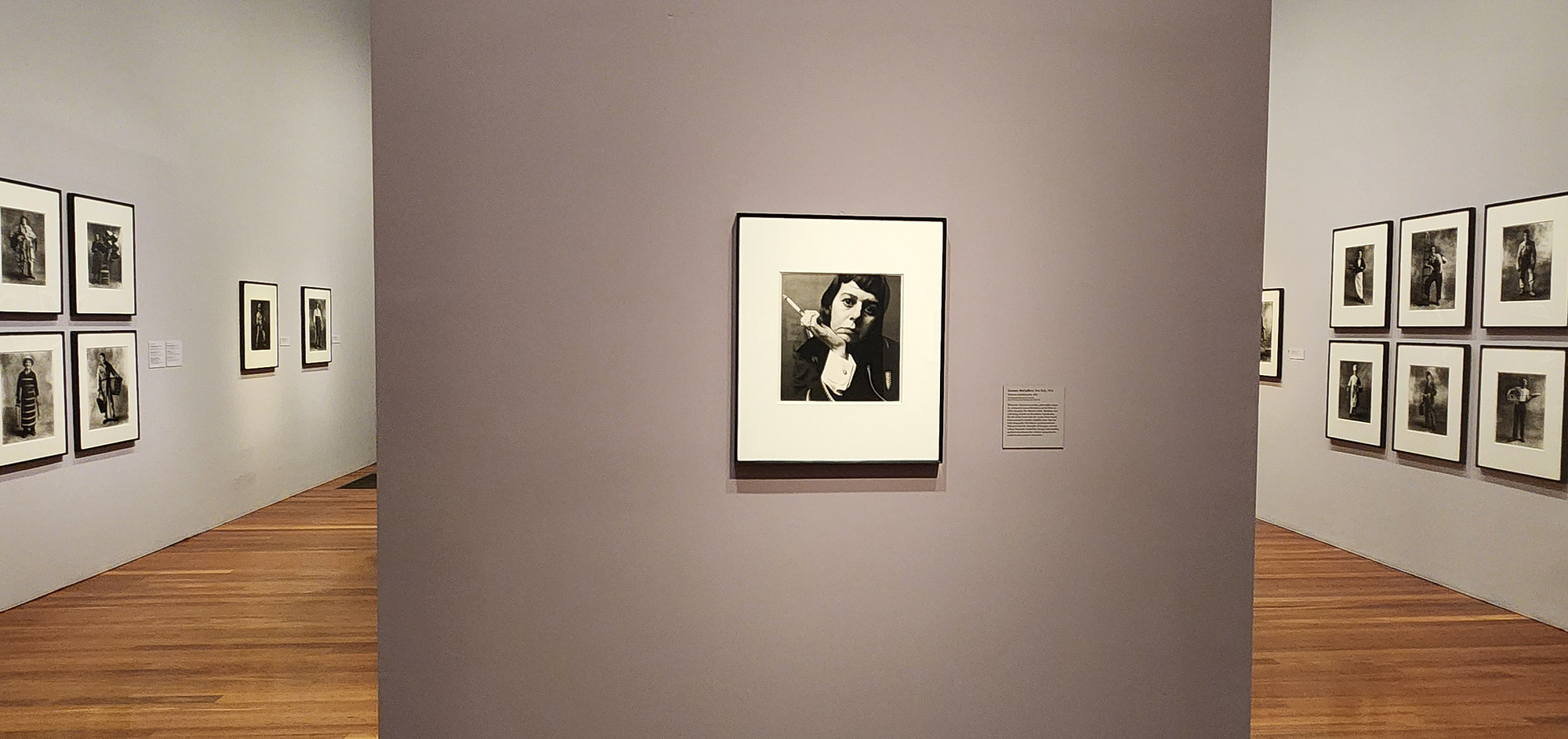 The exhibit is what I expected for classic photography: Portraits set against simple lighting and placed in generously-matted frames. The museum showcases Penn’s work across twelve sections of its lower level, hanging on walls and in enclaves that have been color blocked in grays. Many portraits hang near still life and nudes, and while color photography is also here, the black-and-white prints stand out.