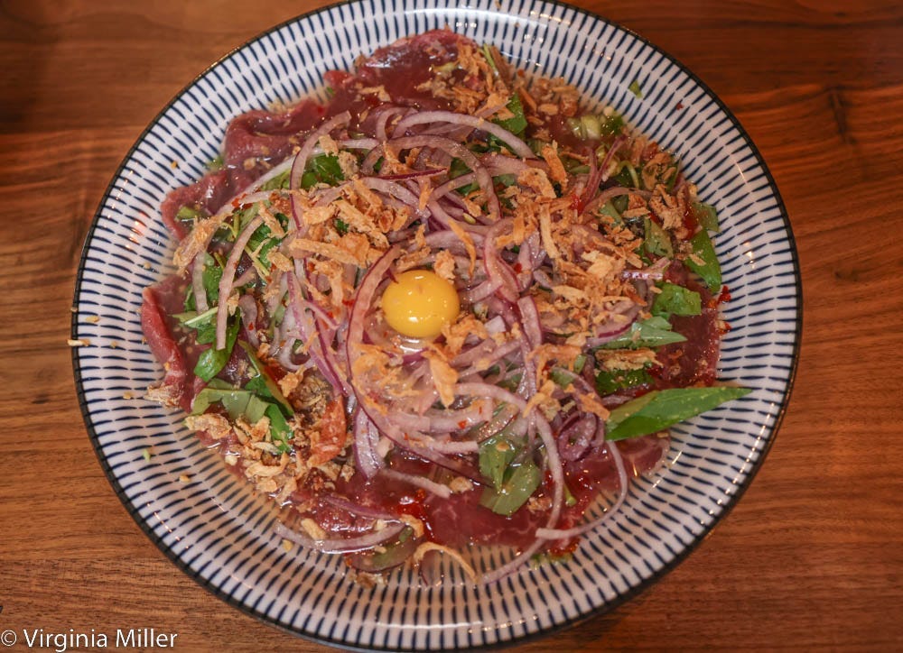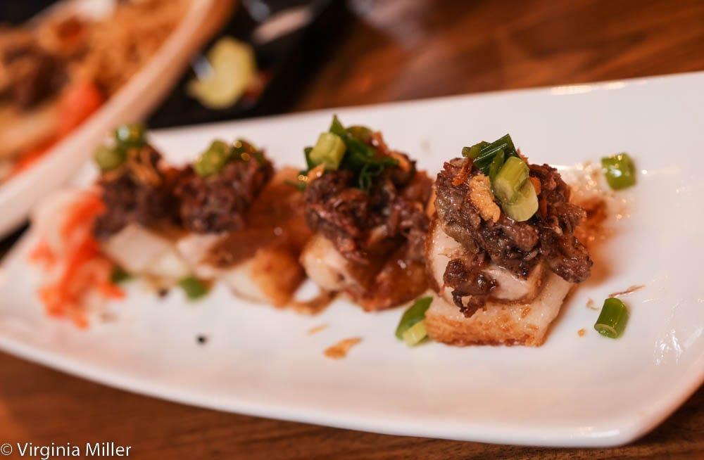 While the is my #1 starter recommend initially, four marrow “crackers” (for $17) are one of the more non-traditional options amid rich starters like 5-spice pork belly or fish sauce chicken wings. Lightly fried coconut sticky rice cakes are topped with a layer of pork belly and marrow, garnished with grilled spring onions and drops of au jus. It’s fatty and silky (are you catching a theme here?) with the sticky rice cake and coconut soaking up all that richness.