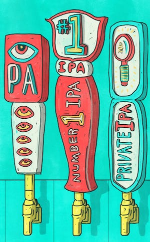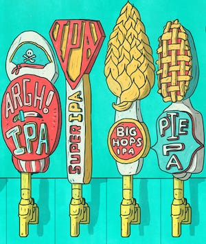 Recently, at a friend’s BYOB birthday party, I headed to the cooler to grab a drink and discovered only one type of beer: India Pale Ale. No, not one brand of beer — there were at least seven (I counted) different breweries represented. It’s just that they were all IPAs. I retreated to the refrigerator, where the beers that couldn’t fit in the cooler rested, to discover more of the same.
