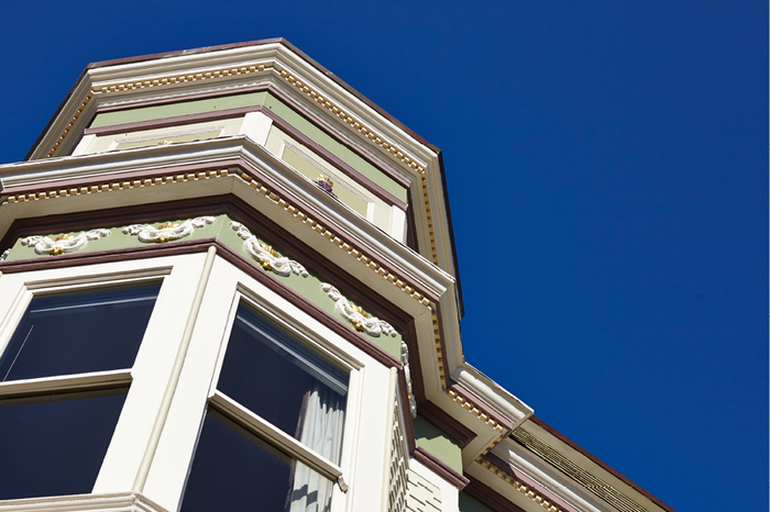 Bob does commercial, industrial, and residential structures with an emphasis on historic buildings, and he’s worked on 100 landmarks like Julius Castle (now closed) and the Haas Lilienthal House. You can see his work on countless residential buildings and homes, including his own house on 20th Street — directly overlooking Dolores Park — which boasts 11 colors. His designs have won local and national awards, and are featured in the Painted Ladies books by Elizabeth Pomada and Michael Larsen. His favorite project to date is 115 Oak Street. It has since changed several times, but in 1976 he transformed it with midnight blue, a creamy off-white trim, and accents in burgundy, yellow, and gold.