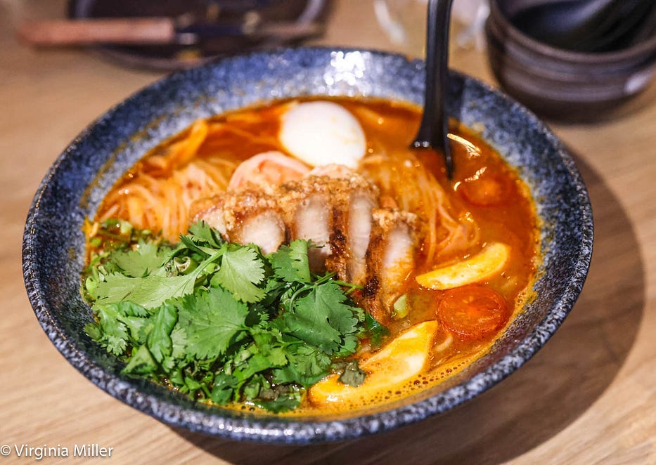 Last dish I must mention, as if there weren’t enough highlights, is in the soup and noodle section. I didn’t try their made-from-scratch Taiwanese beef noodle soup, but curious how it plays with traditional flavors I loved in this national dish in my Taiwan travels. But I don’t regret trying their dreamy Tom Yum rice noodles, illuminating the Thai classic with shrimp, tangy tamarind, chiles, pork belly, king oyster mushrooms, tomato, shallots, sawtooth coriander and a soft egg.