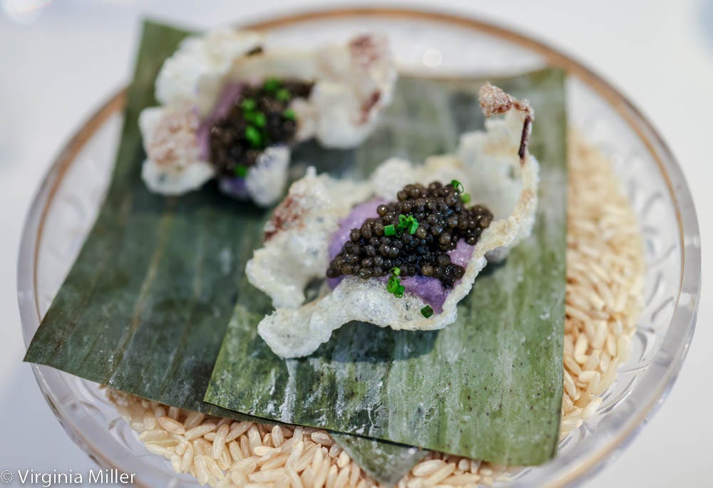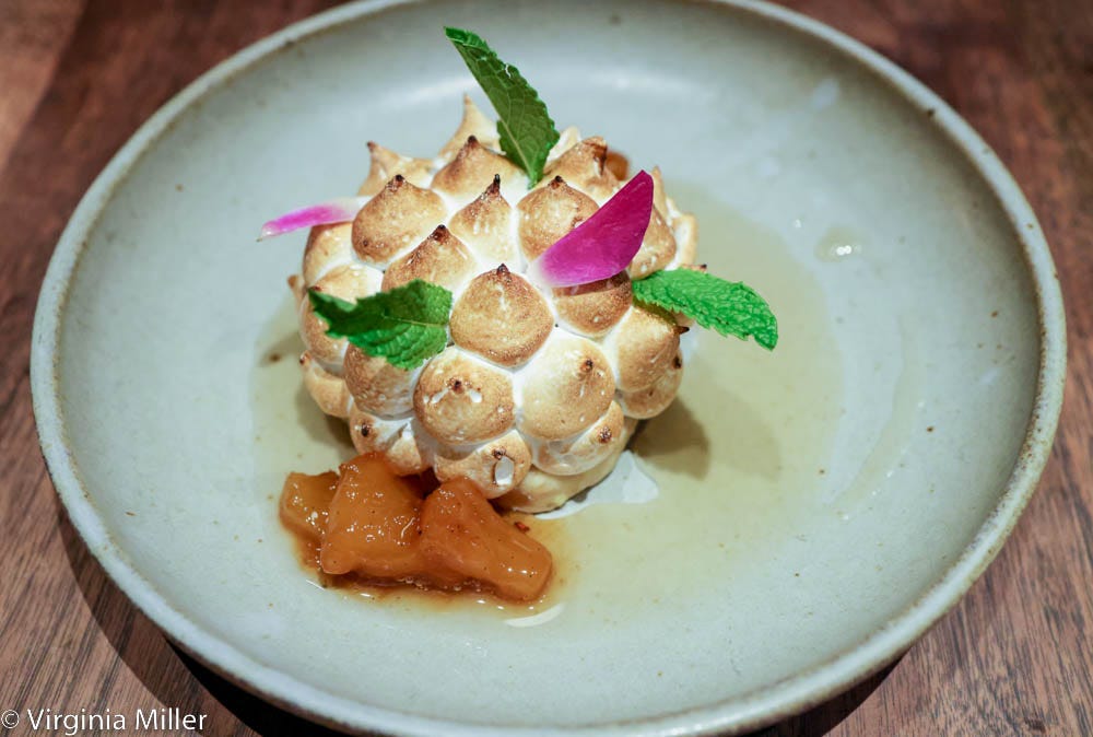 Returning to Abaca inside the Kimpton Alton Hotel is ever a joy, feasting on food from chef Francis Ang, one of the best modern Filipino chefs in the nation. Latest joys on the menu were many. Kabocha squash okoy fritters are vegan, a damn crave-worthy fried platter of thinly shaved squash aromatic with black garlic, pinakurat vinegar and herbs. There are skewers in a range of meats, but beef lengua (tongue) in truffle mushroom gravy and beef hearts kaldereta in tomato jam and olive tapenade were flavor-packed standouts. The biggest bite delight was Kaluga caviar nestled in beef tendon chicharrons over smoked ube mousse, a prime example of how creatively chef Ang plays with and elevates his roots. It’s all perfect with cocktails, like their killer, neon green Limang Piso cocktail of ginger-infused Reyka vodka, Capurro Pisco, buko pandan leaf, lemon, lime oleo saccharum.