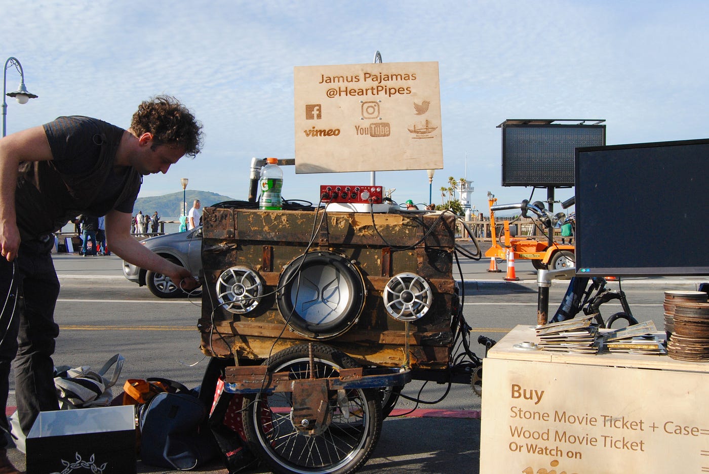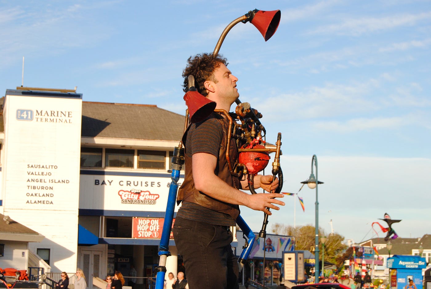 Many street artists are referred to as “buskers,” a name originally derived from the Spanish word “buscar,” meaning “to seek.” For 31-year-old Pajamas, originally born Jamus McDonald, his goals are neither fame nor fortune but rather to simply test the limits of his self-invented instrument, the Heartpipes, and redefine what it means to be a one-man band.