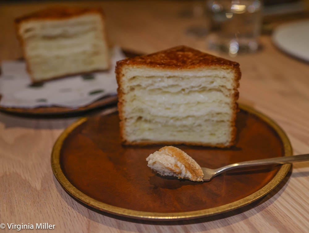 Another unique, killer course is Hodo Soy silken tofu dotted with octopus, Saltspring Island mussels and crab-laced miso is a play on traditional soondubu doenjang-jjigae, a tofu soybean paste stew. It’s partnered with a “crossando” from beloved SF bakery, Ariscault, made for SSAL and served with injeolmi (roasted soybean powder) butter. This insanely flaky, airy, croissant-like square of bread could start a new baking craze and is hella superior to a cruffin, as far as I’m concerned.
