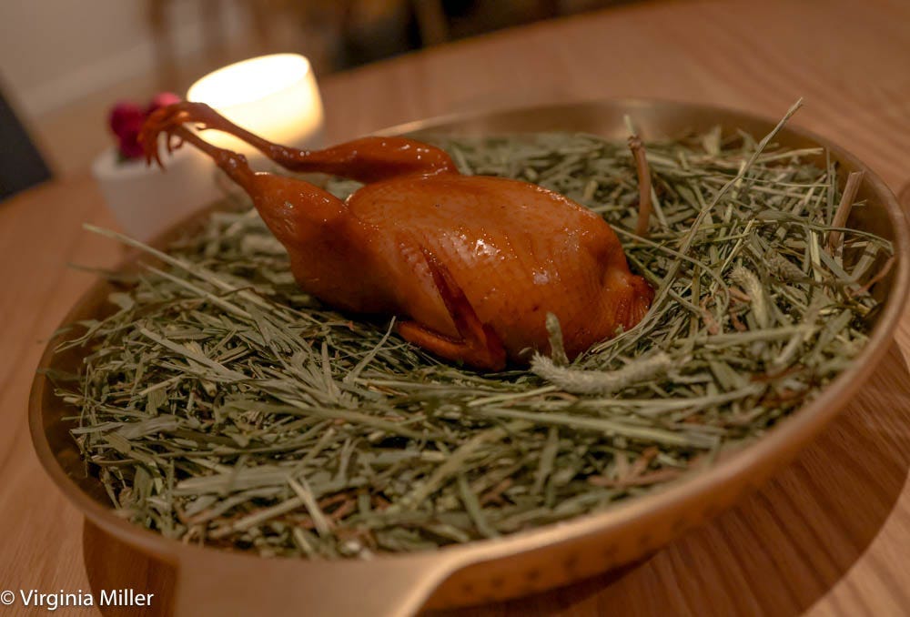 There’s no slouch course here. Even when I weary of meat courses, SSAL surprised with Brennville quail from Wolfe Ranch, a longtime single Vacaville farmer legend who only supplies his superior quail to the best-of-the-best Michelin-starred restaurants that include Benu, The French Laundry, Acquerello, Birdsong, Californios. Bae says he took some convincing — and SSAL’s Michelin-star gain — to start supplying them with his plump, larger quail. It’s cooked to perfection here, smoked with cherry and applewood, accented with pluots, and a squab vinaigrette lively with heat-less habanero, bitter red ginseng and Korean raspberry wine.