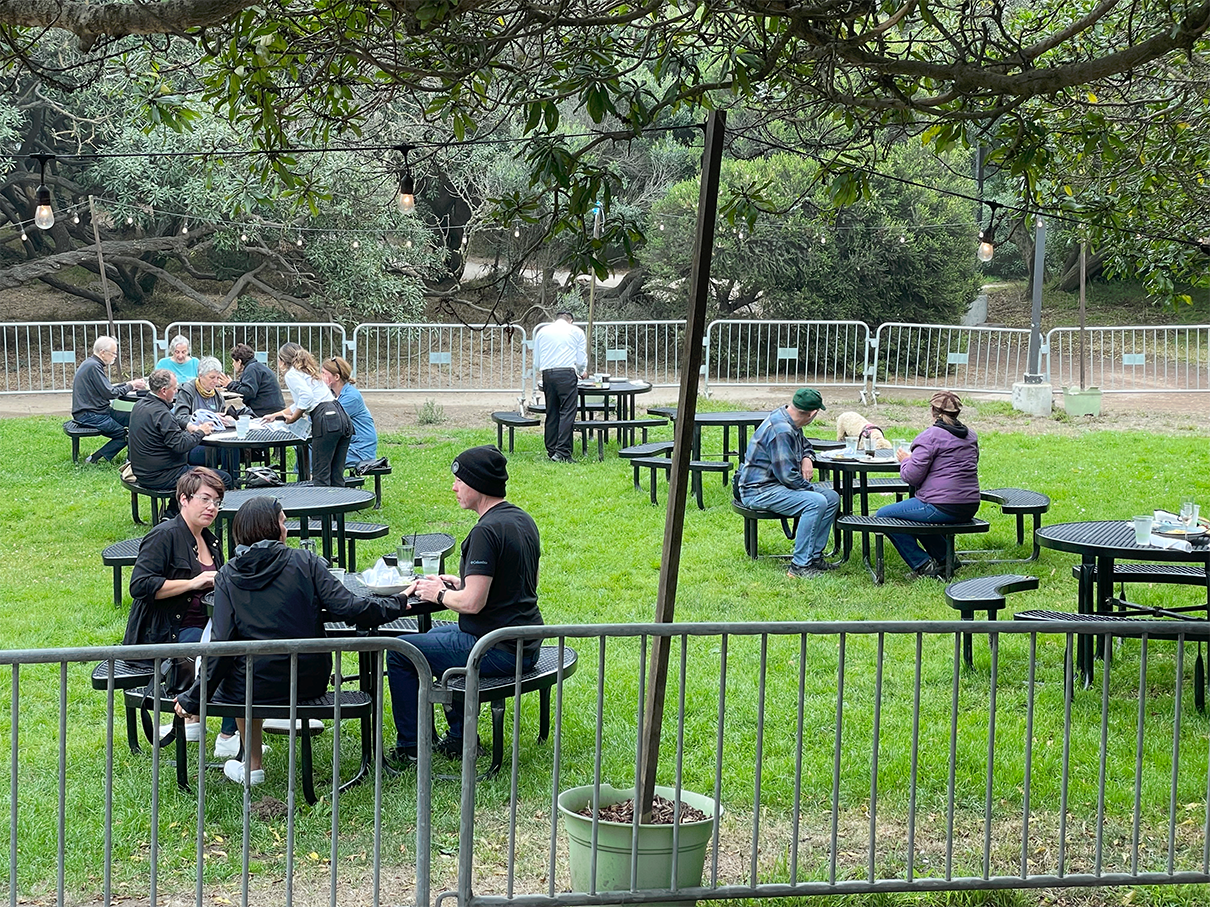 A small detour into the Music Concourse will bring you to the California Academy of Sciences or the de Young Museum. From May to October, you’ll find The Whale’s Tail, an outdoor bar with live music, food trucks, and comfortable seating. Take notes, Central Park.