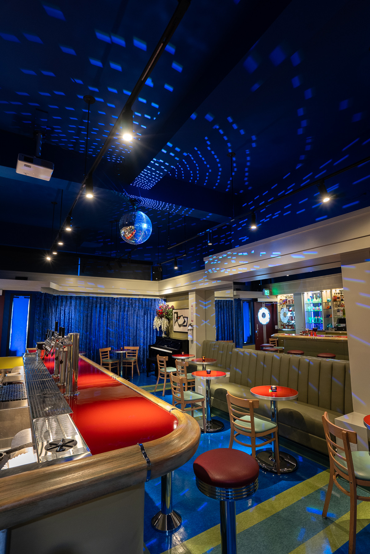 When Tim Stookey, his wife Leslie Cole and her cousin Aaron Cole opened Stookey’s Club Moderne in Lower Nob Hill in 2015, it stepped right out of a 1930s film. Their devoted passion for the era translated to an intimate bar of glossy blues and whites that feels like time traveling. Enter their brand new neighboring live music bar, The Blue Room, which debuted February 8, 2024.