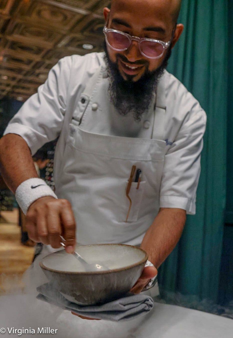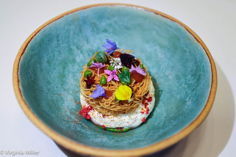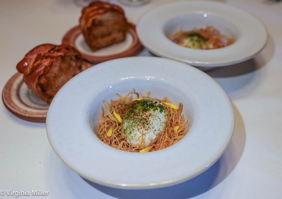 It’s Mexico-meets-India in a uniquely Californian way — hearty, gratifying, and ingeniously crafted. I’ve been craving Indian-style quesabirria ever since! And don’t skip dessert, especially the coconut payasam (pudding) with sunchoke ice cream, coconut caramel, and cashew nougatine, all topped tableside with a frozen coconut rice cryo-mousse, a frozen liquid nitrogen cloud.