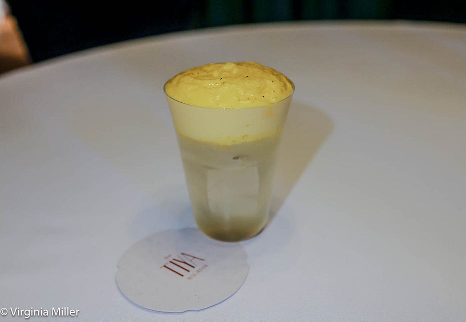 Straight from Mumbai to SF, Thomas’ cocktails at Pippal in the East Bay already impressed me with their lively flavors and elegant presentation. He continues that vibe here, with TIYA’s cocktails celebrating SF, from Chinatown to Japantown, alongside a gin and tonic menu and zero-proof options. One of the most fun cocktails is the Mission District, a mix of Campo Bravo Blanco Tequila, salsa verde, lime, house nopales cordial, acids, and salt, garnished with a tortilla chip. It’s food-friendly, gently spicy, and playful.