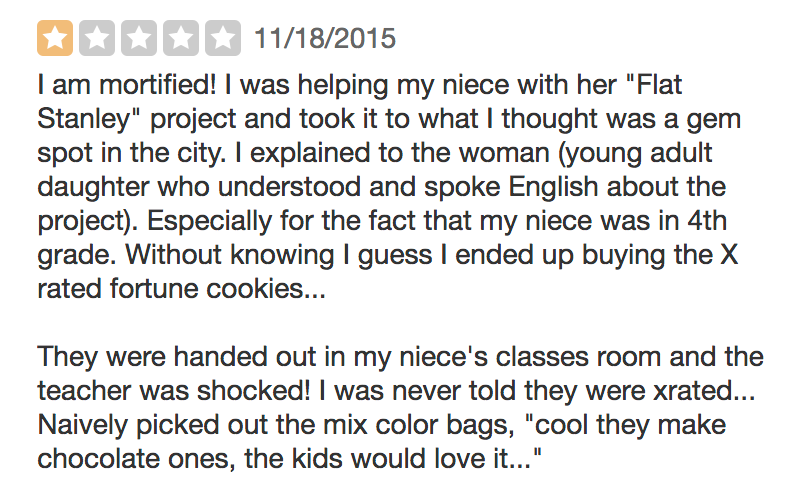 Note to self: purchase the X-rated fortune cookies next time you’re in Chinatown.