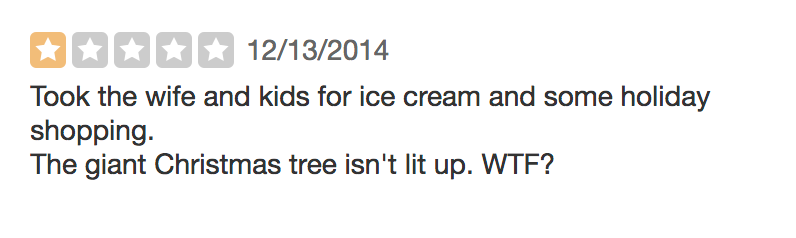 You’d be surprised at the lasting negative impression an unlit Christmas tree can have on a person, never mind the overpriced, meh ice cream and the shit-show that is Ghiradelli Square.