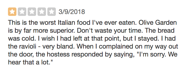 I’d love to know which Olive Garden this reviewer frequents that’s better than this North Beach Italian restaurant.