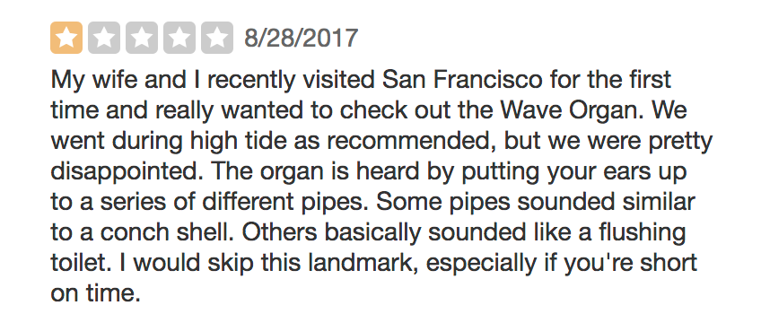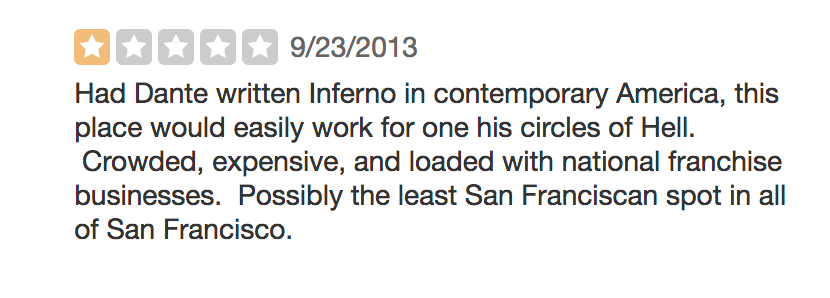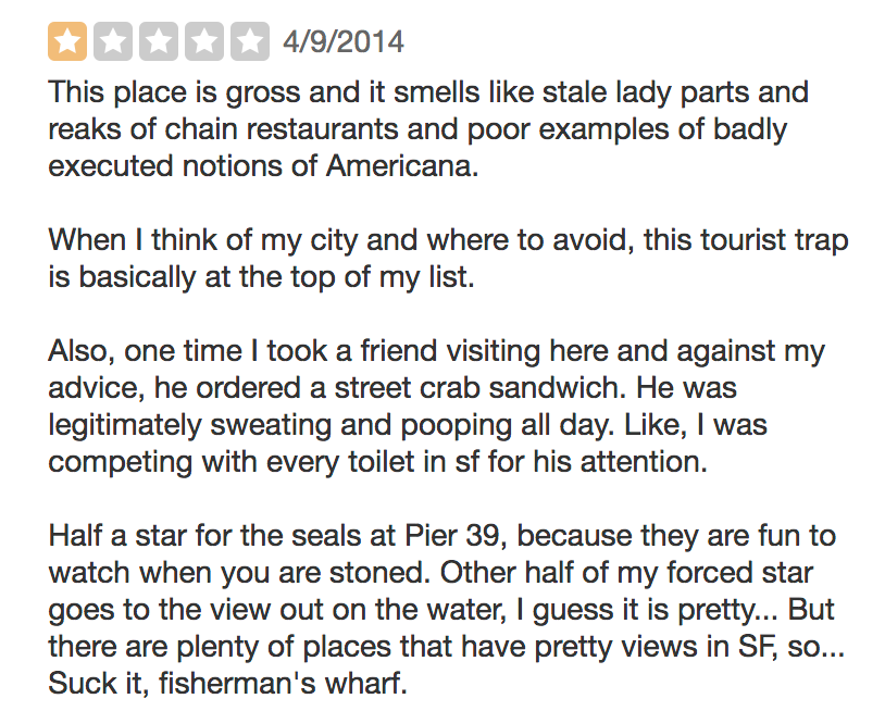 Here we take a look at a few visitors who have taken to Yelp to review San Francisco’s most iconic tourist traps to tell us how they really feel.