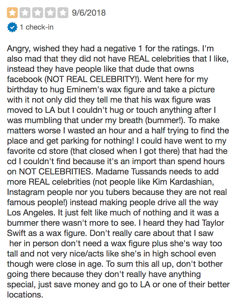 Someone needs to have a serious talk with this reviewer about wax museums and CDs.