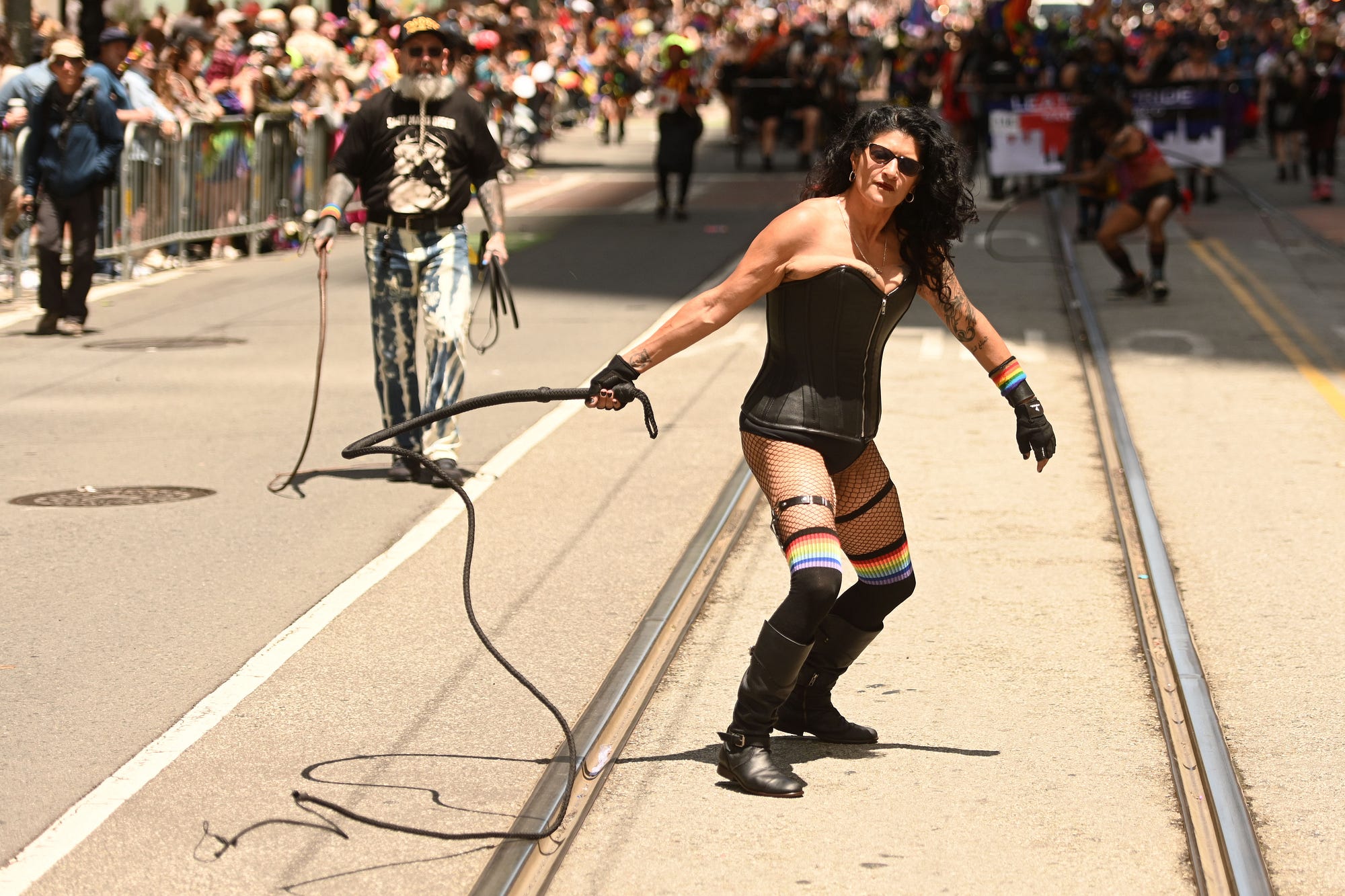 Everyone still brought their smiles. Fierce looks strutted on sidewalks and asphalt, while many others danced from convertibles, floats, and streetcars. SF weather was its typical fickle maiden, giving us both sprinkles in the morning and sunshine as the afternoon wore on.