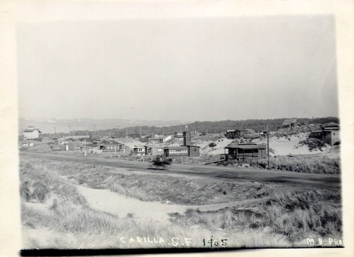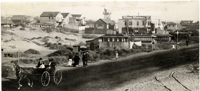 Sadly, Carville became too big for the humble infrastructure. The charming wooden walkways were replaced with concrete sidewalks. Power lines and phone lines began to populate the neighborhood. The increase in amenities came with a decline in interest. All of what made Carville-by-the-Sea a glorious aside from the gold-rushed city had been tainted by unrestricted development. Around 1910, realtors started to sell smaller, cottage-like houses near the dunes (much more successful than Sutro’s try at mansions), and Carville slowly dissolved into the newly developed Outer Sunset.