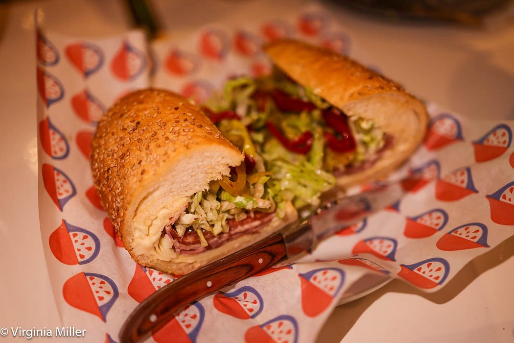 The new aspect here compared to the other two Che Ficos is five different sandwiches. Previously the sandos have only been available at the Menlo Park Mercato. At the pizzeria, there’s a marinara-drenched chicken parmigiana sandwich and a muffuletta, which I haven’t tried yet but it will be impossible to top the best-ever muff at Sandy’s in the Upper Haight. I tried Che Fico’s parmigian sando and the I-talian sub, a sesame roll packed with sopressata, capicola, onion, lettuce, mayo, olive oil and vinegar, offering crisp, meaty contrast to red sauce-laden pizzas.