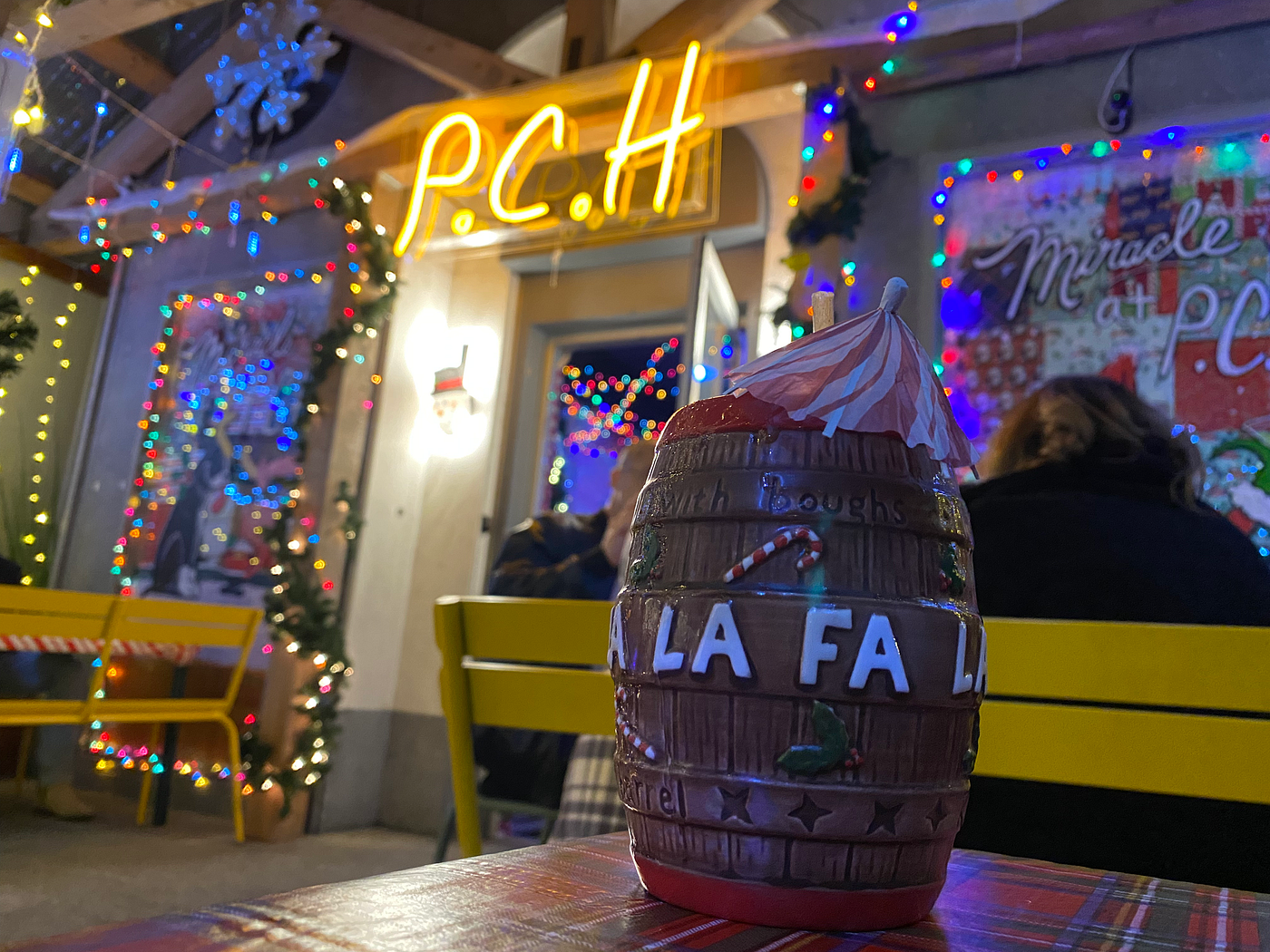 Merry Christmas, Union square. Pardon if the Yuletide cinema references are a little thick today: the Miracle on Sutter Street, currently encamped at Pacific Cocktail Haven, is snowed over in kitsch Christmas comfort, wrapping paper, holiday pin-ups, dangling lights and the occasional flurry out front, and the feeling is catching.