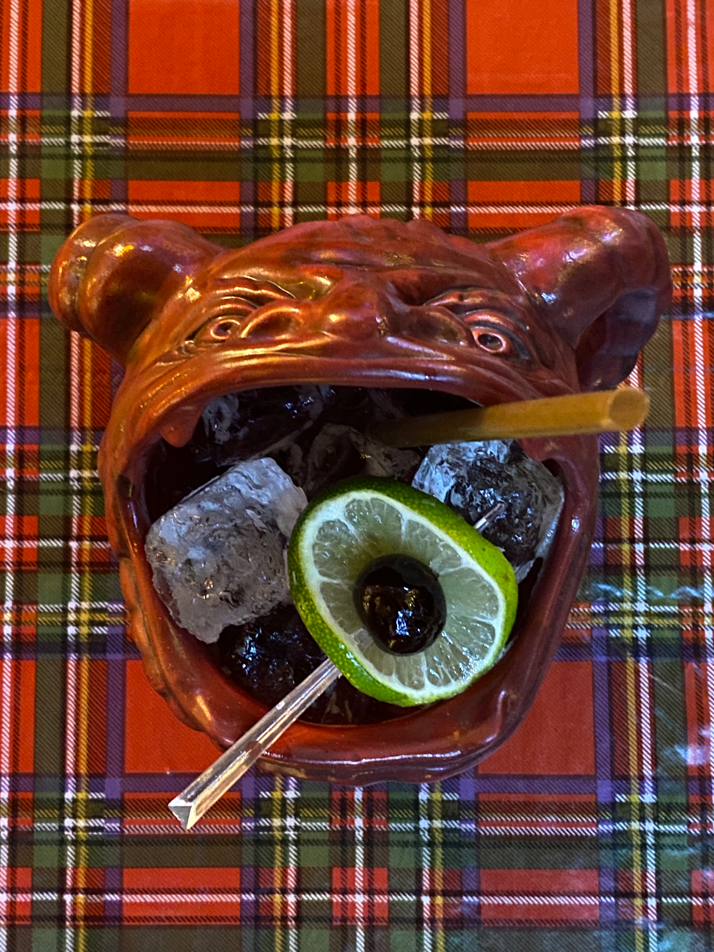 A krampus, in case your Alpine folklore is dusty, is St. Nick’s horned counterpart who frightens bad children rather than the usual coal lump à la Americain. Simple and effective, like this drink: tequila, habanero bitters and herbals for an almost Tex-Mex inspired cocktail in one ugly mug you can hold with both hands.
