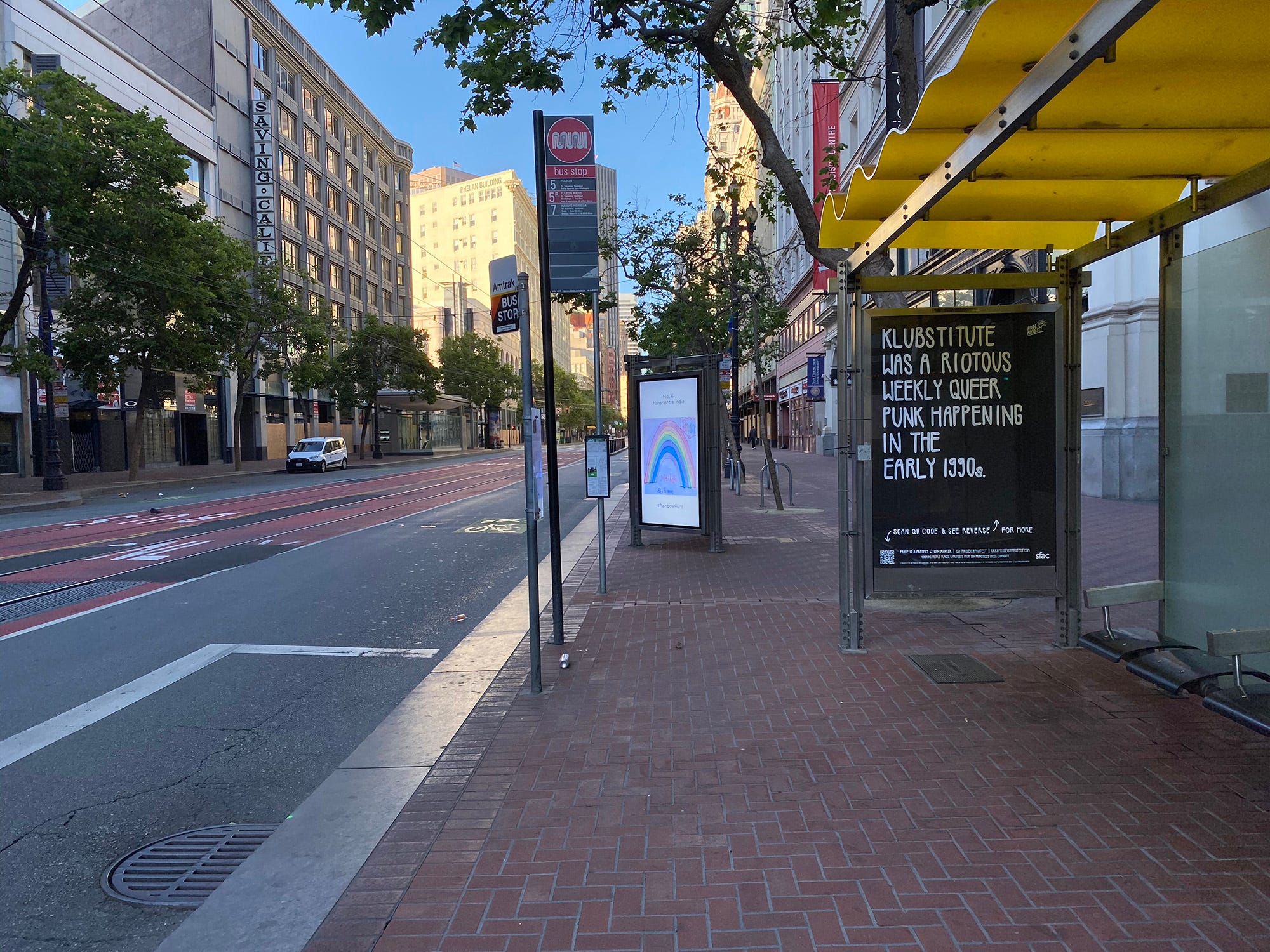 My goal for this poster series is to recenter the narrative of Pride away from pinkwashing and rainbow capitalism to its roots as an act of protest.The posters employ a black-and-white color scheme to be visually alluring and starkly frame the content against the Technicolor backdrop of San Francisco, highlight the relationship of the pieces to each other as a series along Market Street, and make a statement — a protest — against the over-rainbowfication of Pride.