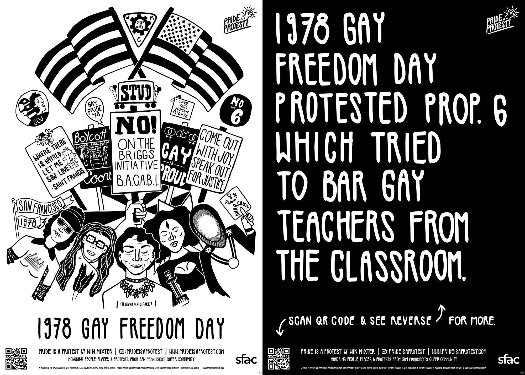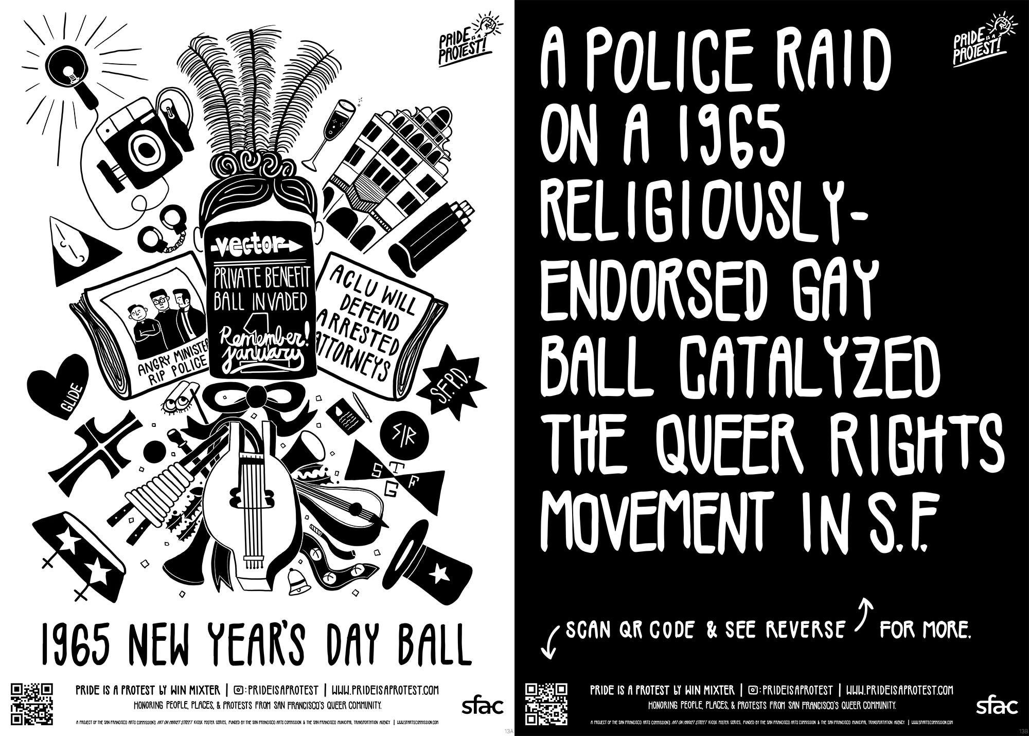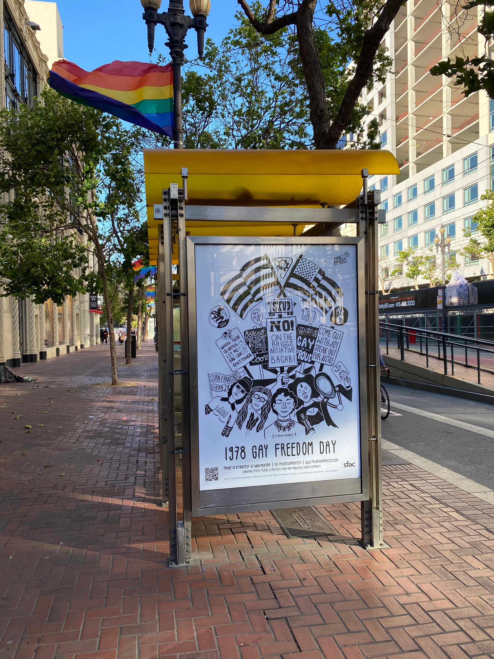 The 18 front-and-back posters are intended expose the public to the individuals, places, and protests that have made San Francisco a global epicenter of queer life. I sought to represent the full spectrum of our queer community and highlight as many lesser-known narratives about our various subcultures as possible.