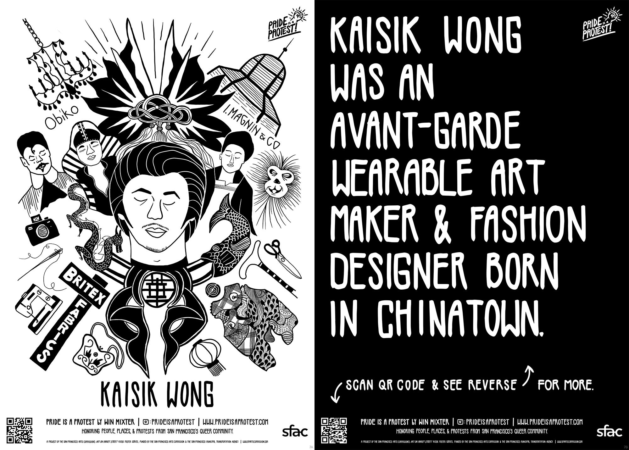 Kaisik Wong (1950–1990) was an avant-garde Chinese American wearable art maker and fashion designer born in Chinatown, San Francisco. Despite a relatively low historical profile, he created custom designs for stars like Elton John, Tina Turner, and Angelica Huston. He was was a collaborator with Steven Arnold, famed Cockette originator and Salvador Dalí protégé.