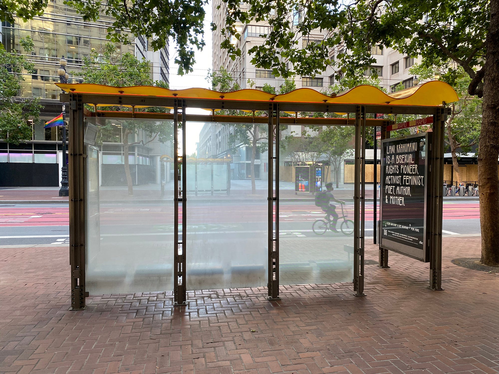 As a designer, I thought about how I could contribute to this cause. So I worked on a project called Pride Is a Protest that aims to elevate the potency of intersectional organizing. This project is a part of the San Francisco Arts Commission’s Art on Market Street kiosk poster series, responding to this year’s theme, “Celebrating 50 Years of Gay Pride.” From now until August 31, 36 unique posters telling the story of LGBTQ+ activists and history will be on display around San Francisco at Muni bus kiosks along Market Street, from Embarcadero to Civic Center. (View a full map of the poster locations here.)