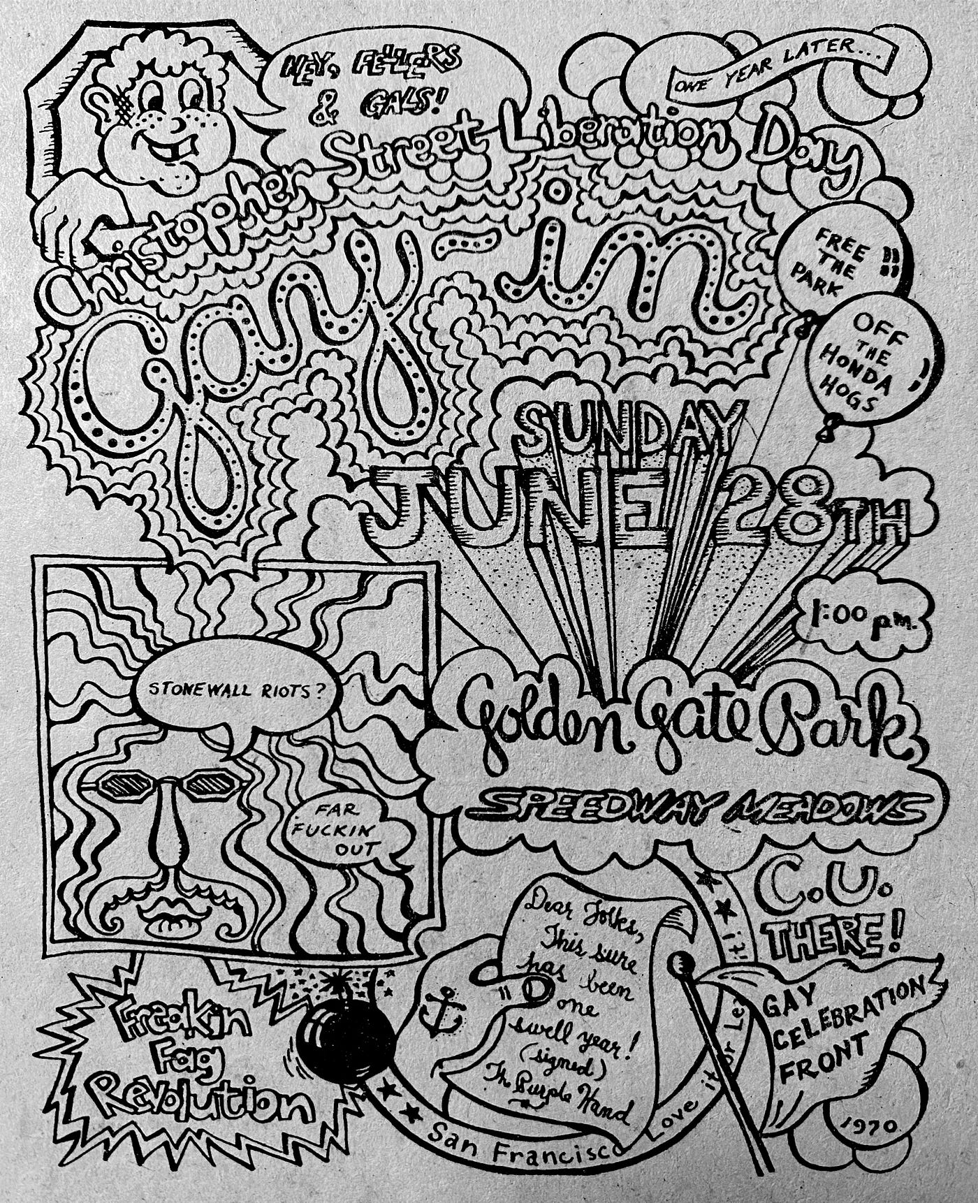 Pride began in San Francisco in 1970 as a march down Polk Street followed by a “gay-in” in Speedway Meadows at Golden Gate Park in solidarity with the previous year’s Stonewall Riots. It was actually the first Pride celebration to be held, a day earlier than Los Angeles, Chicago, and New York City. The earliest iterations of Pride, from 1970 to the mid 1990s, were bold displays of the courage it took to be gay in the face of a society that didn’t care to understand queerness. The first days of Pride were jubilant showcases of resistance, rebellion, and radical self-expression. They were direct actions against oppression.