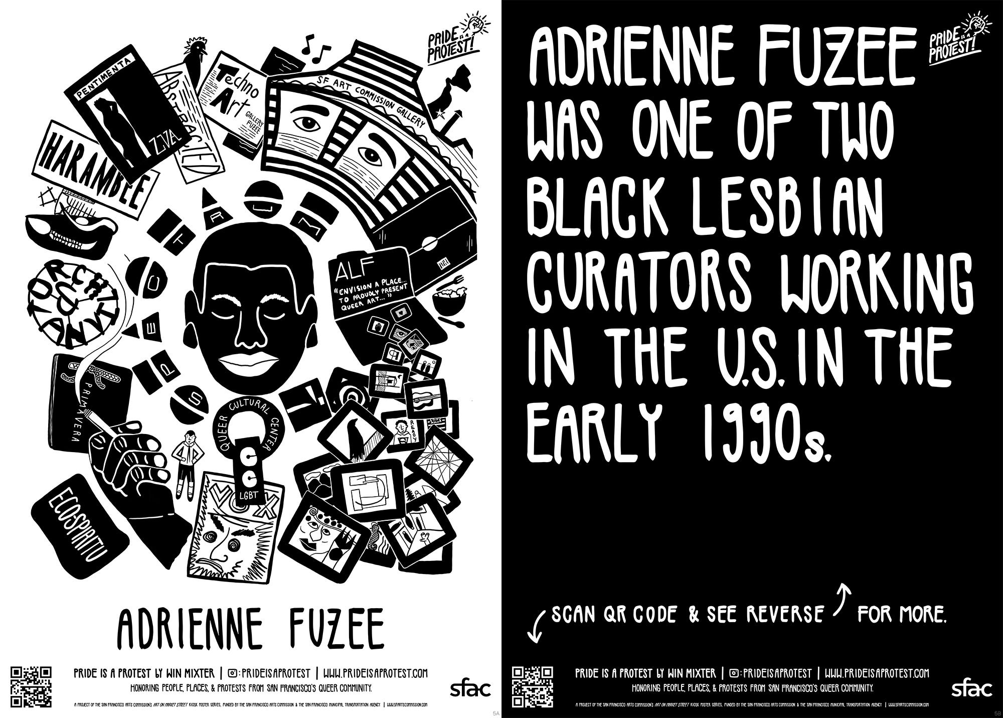 Adrienne Louise Fuzee (1950–2003) was one of two openly lesbian African American curators working in the United States in the late 20th century. She lived and worked in the Bay Area from high school onward. She was an educator, poet, author, and musician. Her radical self-expression came in the form of her visionary curatorial practice.