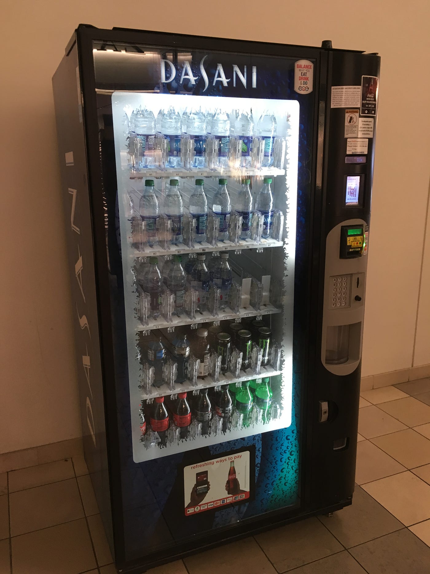 Just a regular old vending machine, the original robot food source. You put in money; it gives you a Coke or a water. It doesn’t spy on you; it doesn’t have any robot arms to spill drinks all over; there are no salivating VCs trying to monetize your personal data; and the drinks are really cheap.