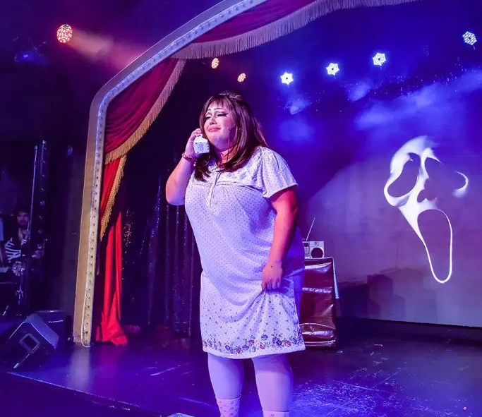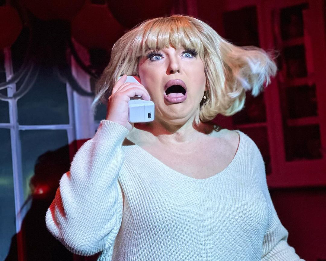 Pay attention to start times: 6:30 p.m., 6:45 p.m., and 7 p.m. all will lead to the same show, with earlier arrivals snagging a cameo of the character Drew Buriedmore, played by Drollinger and her iconic expressions. “What’s your favorite scary movie?” a creepy guy keeps asking her in repeated phone calls.