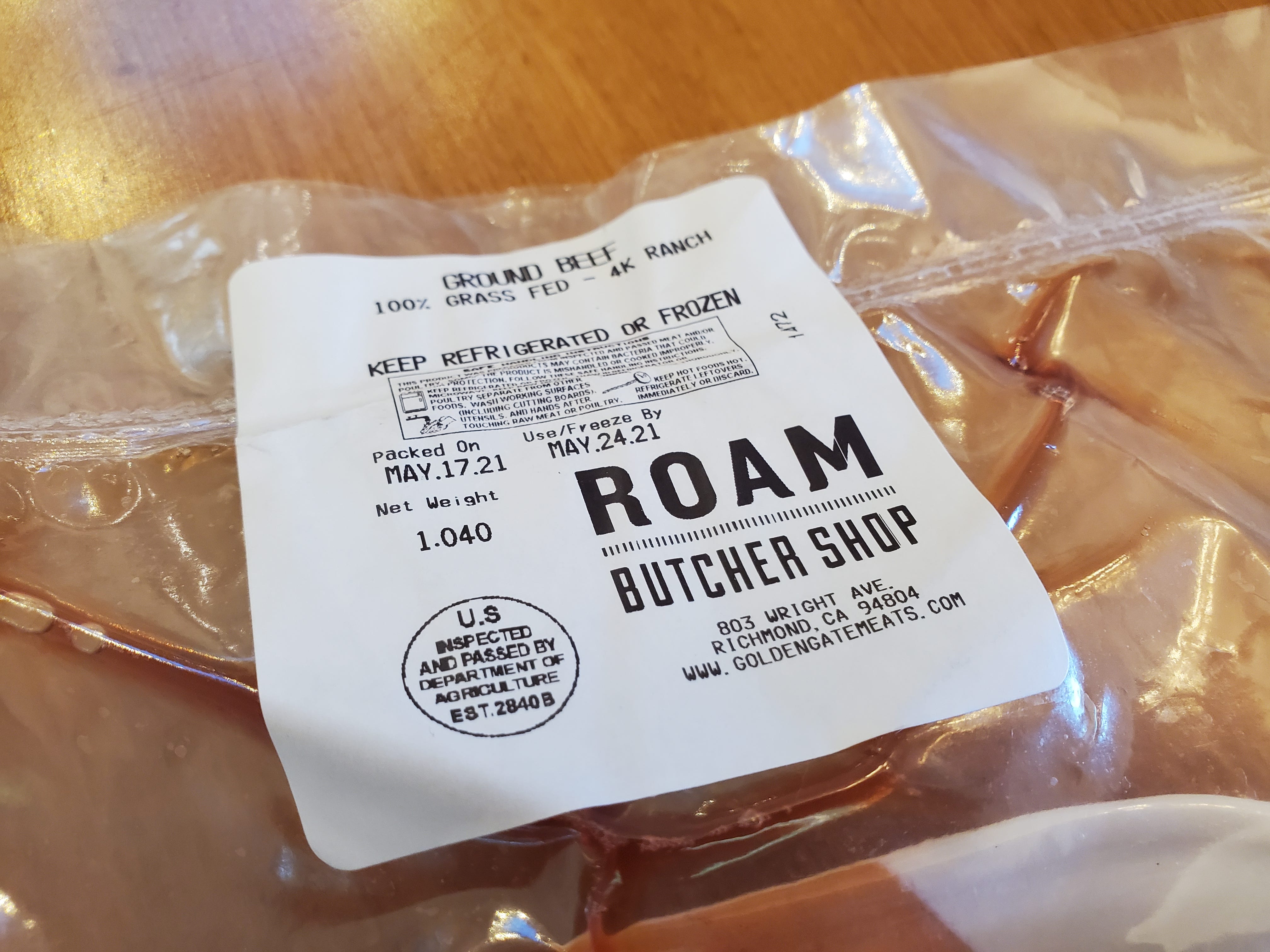 For a recent barbeque, I ordered two pounds of 4K ranch grass-fed ground beef from Roam. It arrived semi-frozen (not ideal for taste, but certainly better for safety) in a Roam-branded cold bag. I defrosted it, seasoned it, formed it into patties, and threw it on the grill. The burgers were a revelation — far more flavorful and much less fatty than the 80/20 beef from Whole Foods which I normally use.