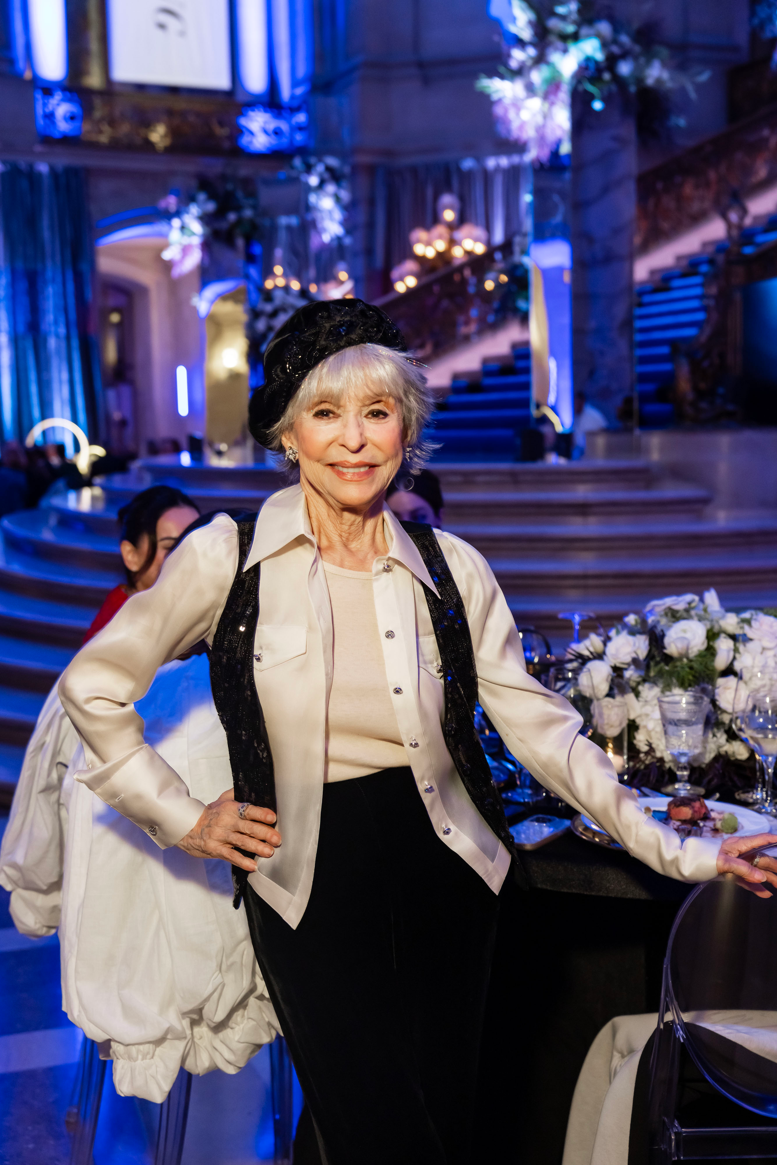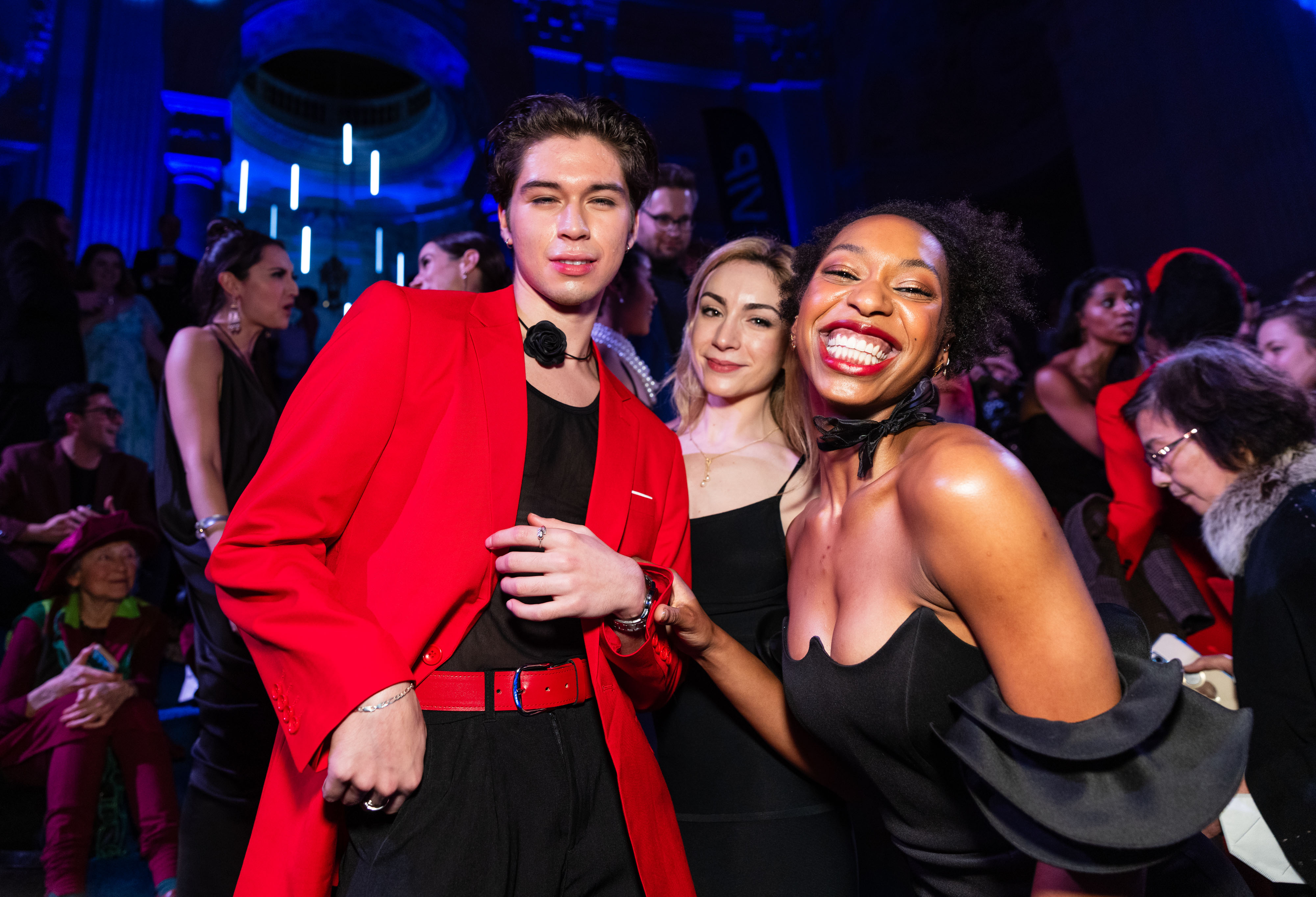 The party theme this year is “Pandora’s Mystery,” a reference to the world premiere of Mere Mortals, which is playing for another couple days. The well-received show invites us to look inside Pandora’s jar, otherwise known as artificial intelligence in the modern era. So I expected a lot of Grecian looks at City Hall, but the predominant choice was cobalt blue-and-black dresses, and I somehow landed near the thematic homework assignment for two years running.