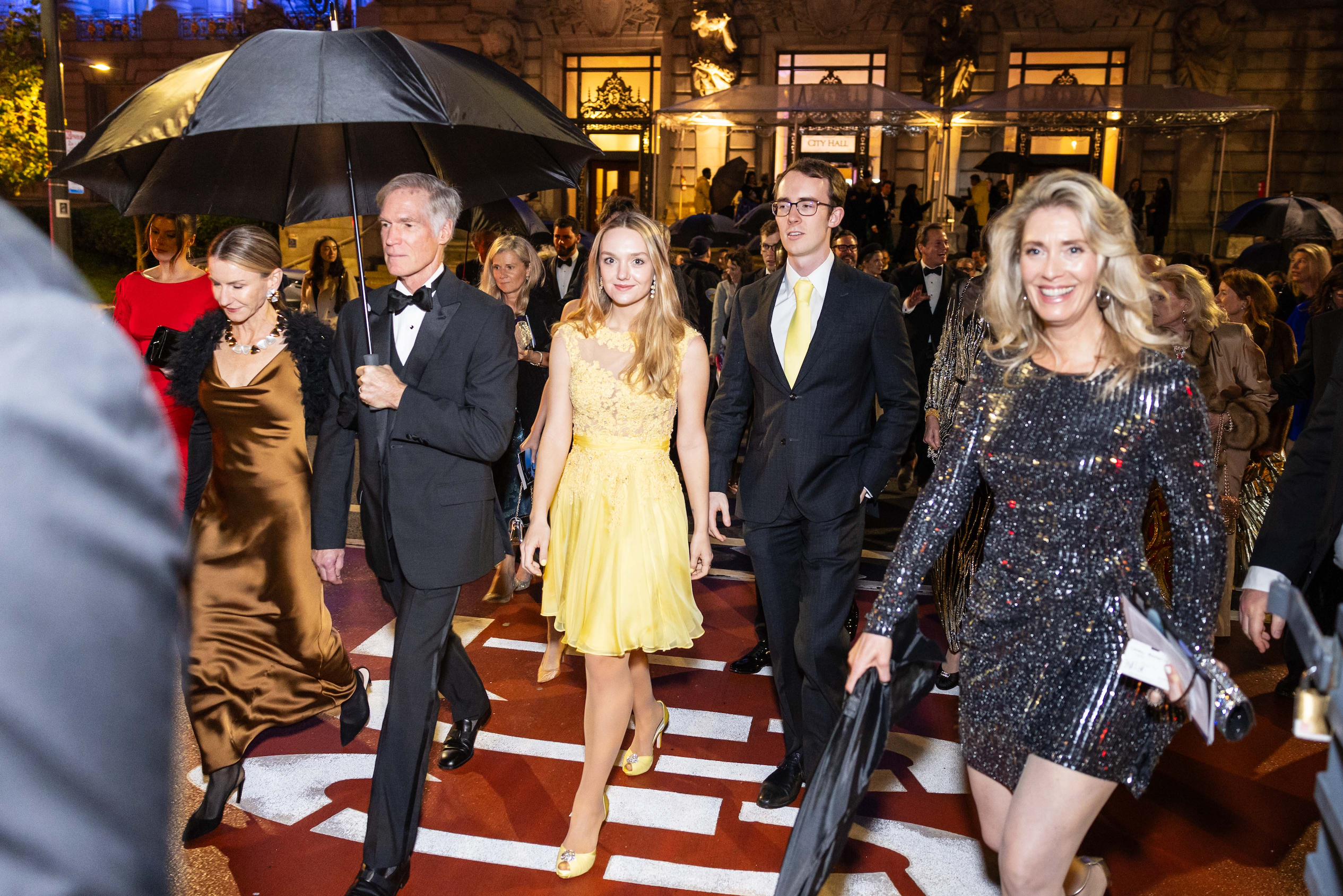 Everyone spent so long taking selfies that event staff sternly urged us to our seats 10 minutes before the show. The upside in herding cats was fewer crowds around theater doors, making for memorable fashion moments on damp streets en route to the War Memorial Opera House.
