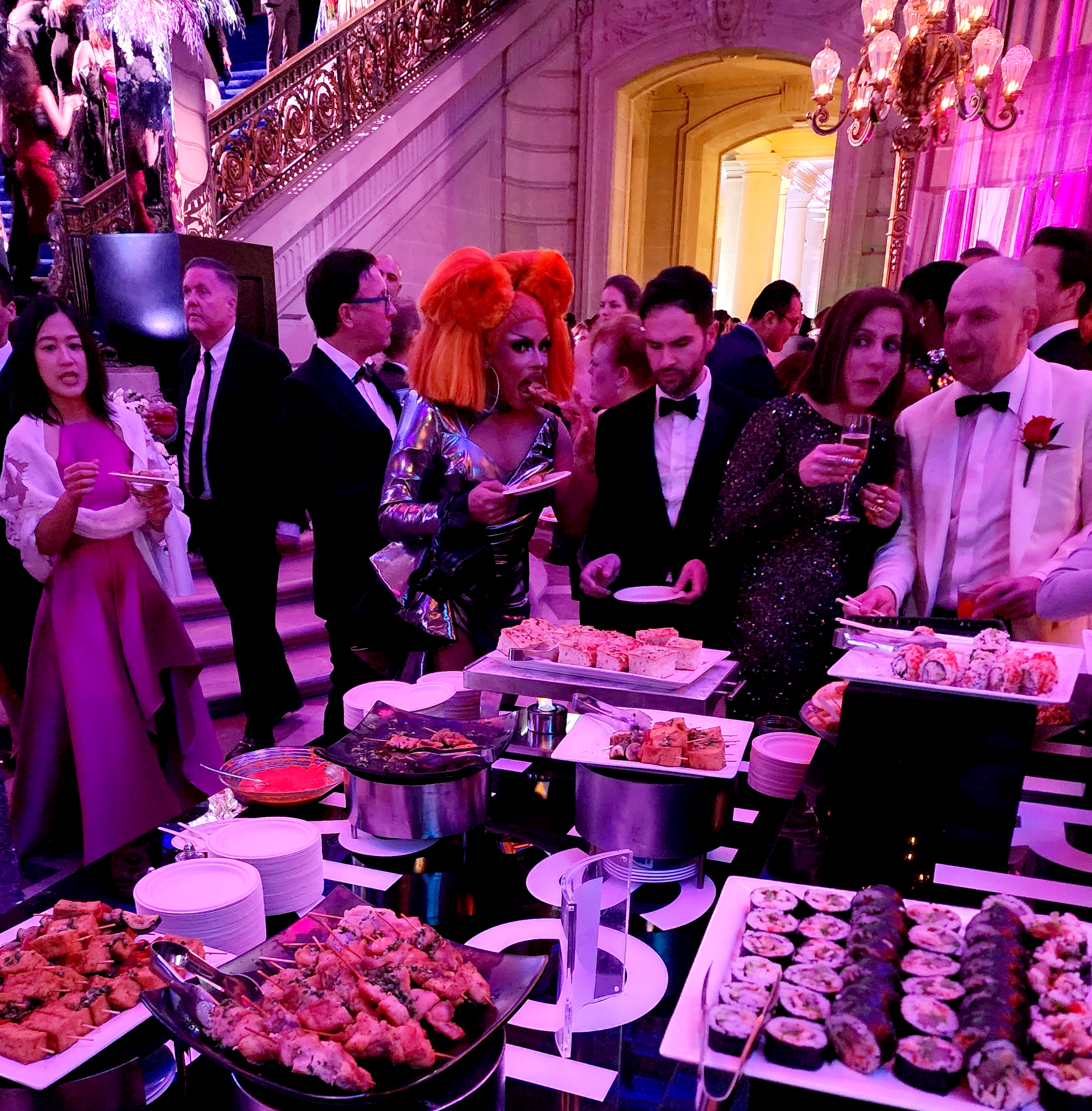 The transformed, very sparkly City Hall hosted many luminaries, fancy folk and several drag queens throughout the evening on January 24, including a hard-to-miss Lady Camden. My favorite, however, was this no-pants look with heels and lace stockings, serving a very dolled-up Risky Business —