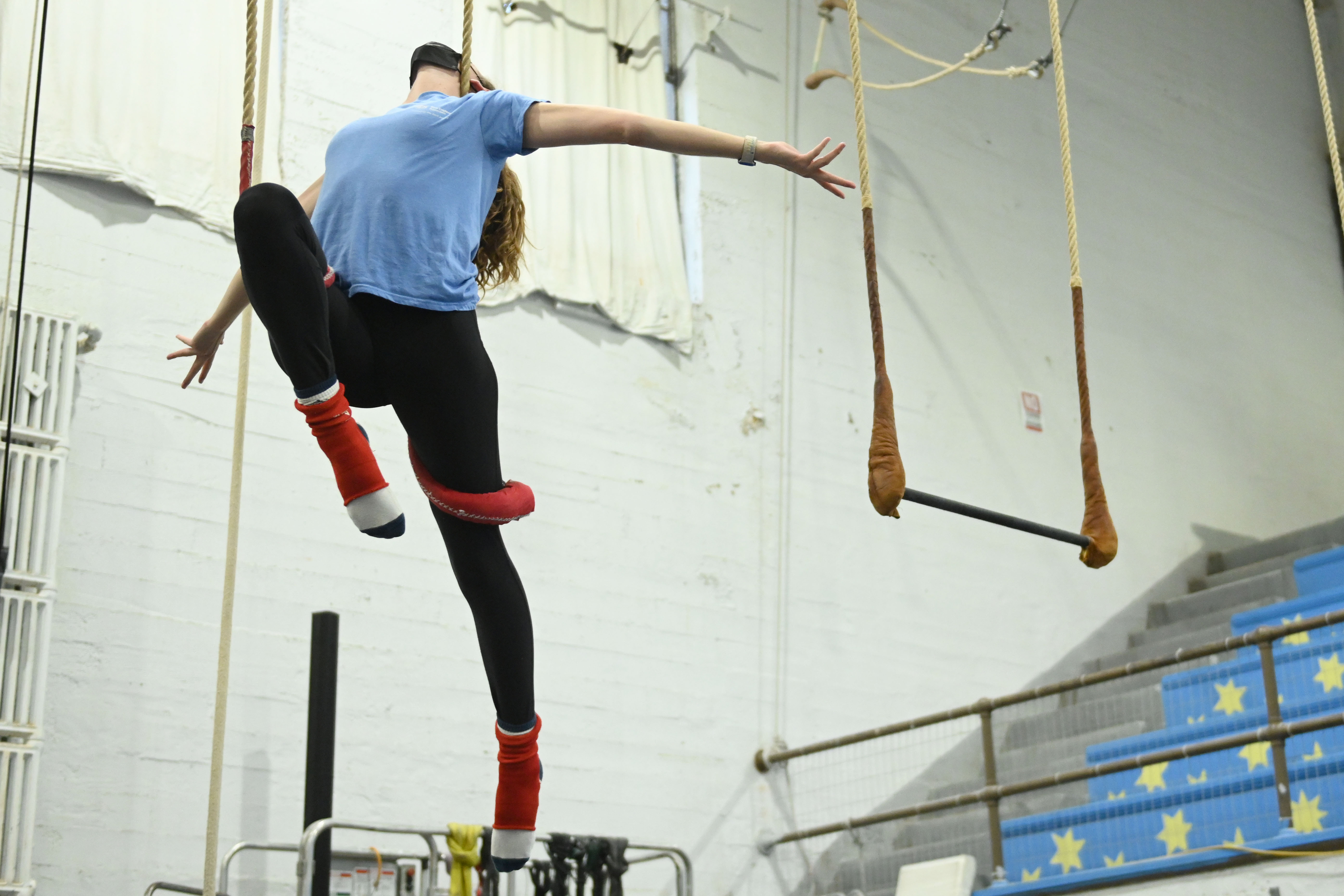 Julia Prebilich, a student in the school, was just warming up when I approached her to talk. Julia explained that she was working on single point trapeze, one of four types of trapeze available at the school — the others being aerial, static and swinging.