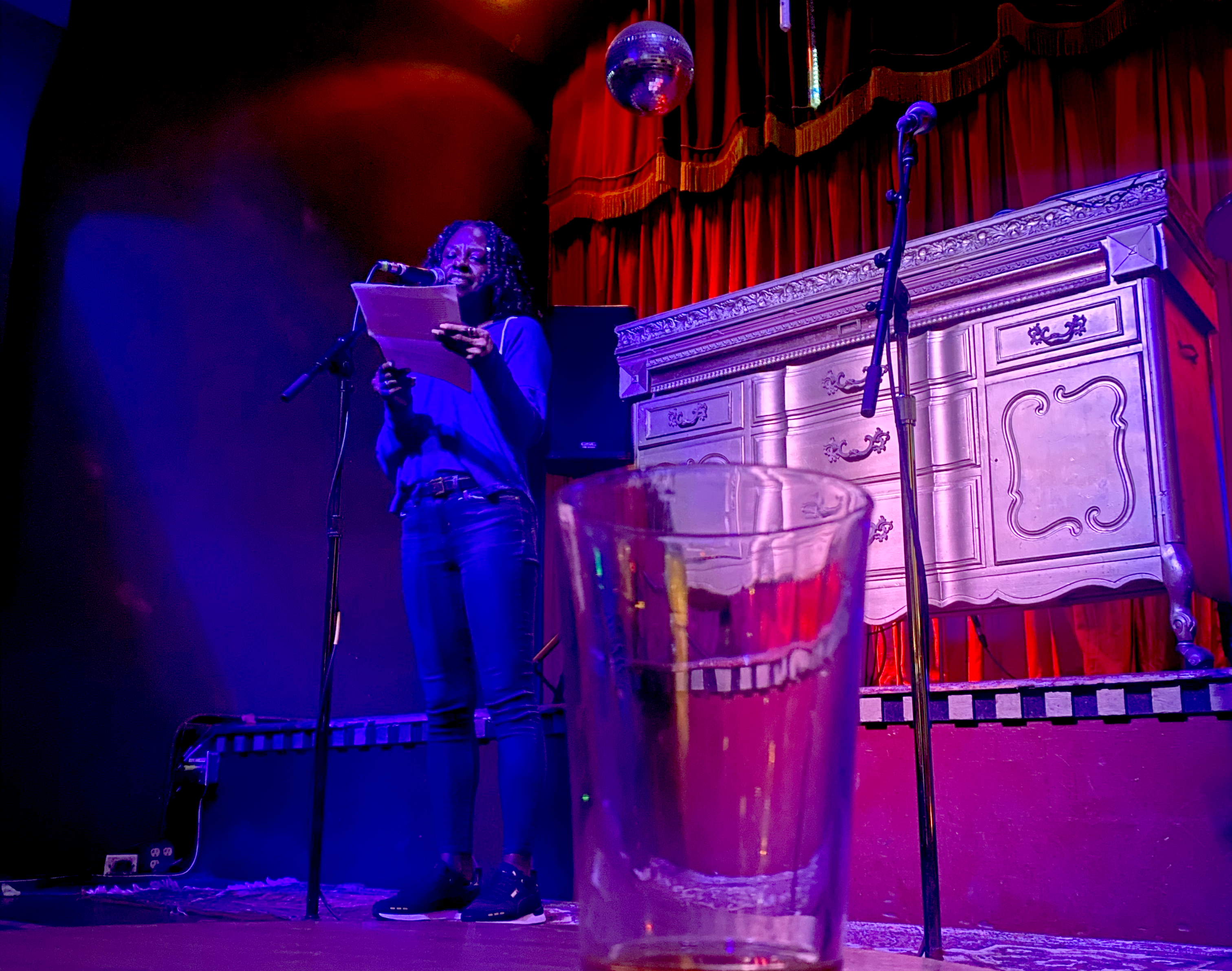 Garrett Shlichte is a writer for countless brand-name publications alongside a chef, but tonight they’re especially in form about a breakup in the back of a Washington D.C. bus. A particularly poignant line on relationship lengths: “Six months is just long enough to imagine six months more.” Schlichte wasn’t the only one that the topic evoked a memory of a lost love: Denise Masiel follows with a soulful poem about the aches of exercise replacing the aches of lost, passionate love and the consolation of a “bad bitch playlist.”