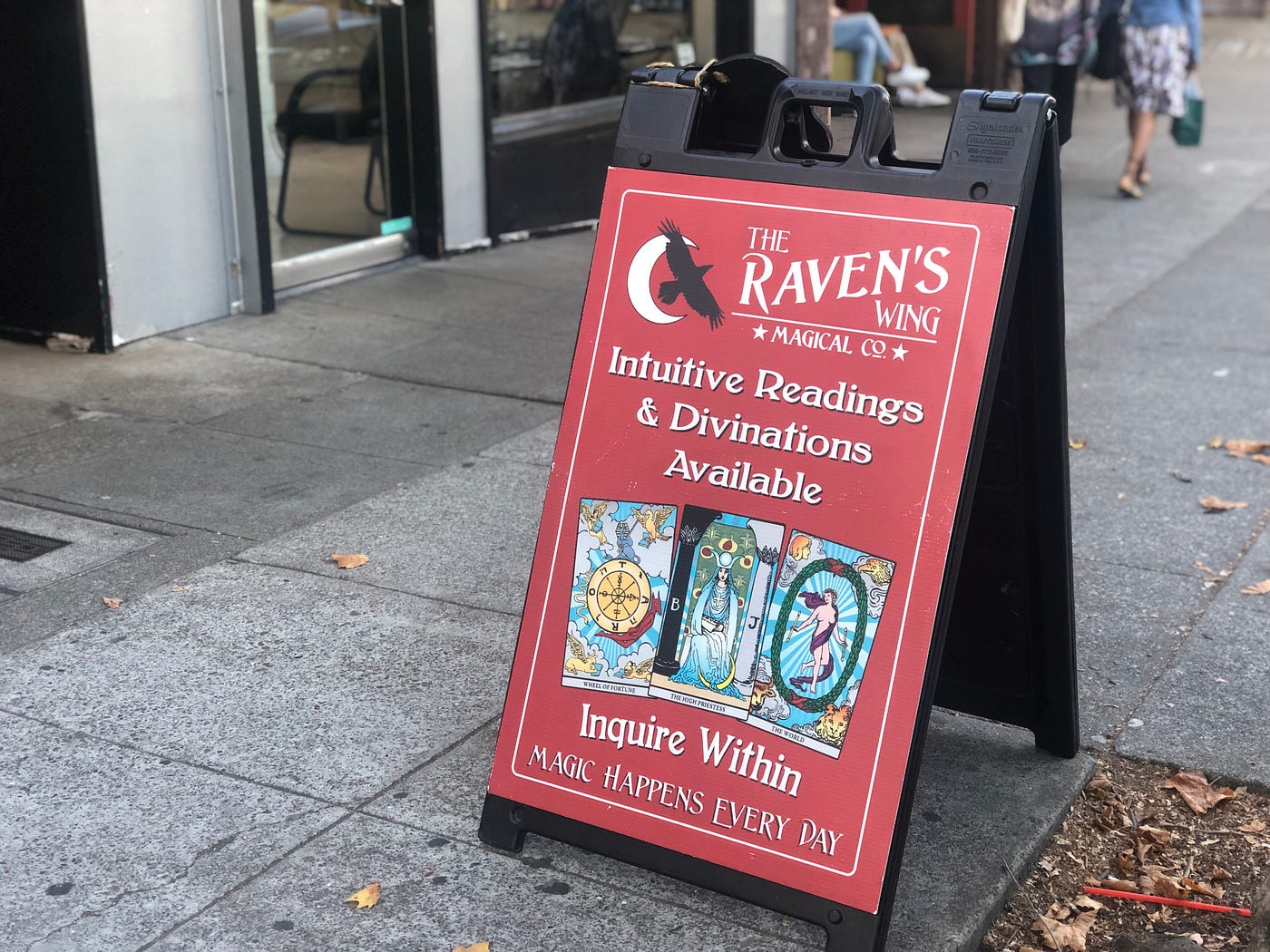 I had to connect with something, or I’d definitely become unhinged, untethered from the ground like a person with a balloon for a head. But instead of floating into the atmosphere and turning to my familiar friend, self-destruction, I went to Ravens Wing Magical Co. in Oakland for an after-work seance of my own spirit.