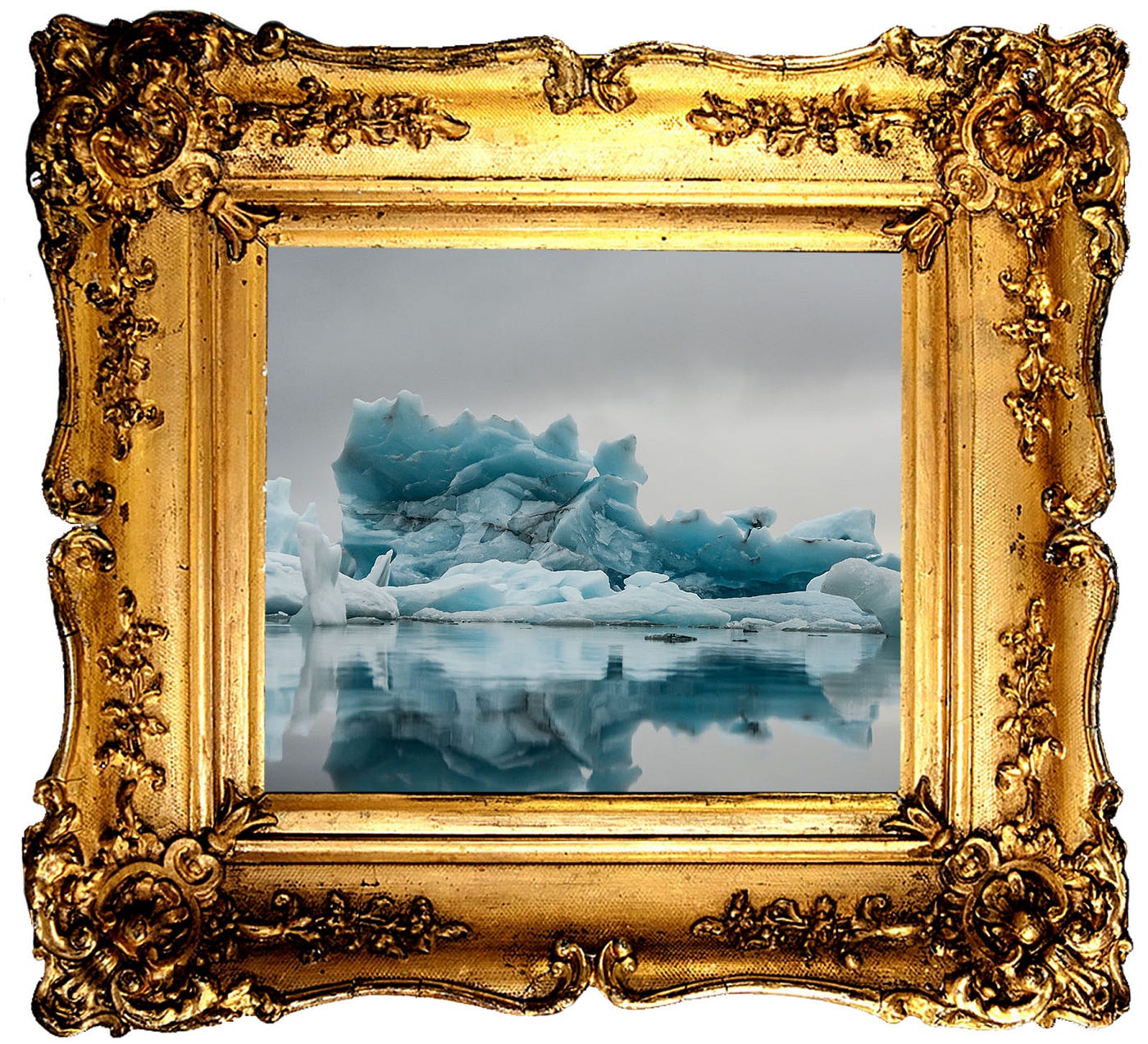 The theory is that a desperate sea captain snagged the final chunk of ice cap after global warming destroyed the rest. He was able to shove it in his YETI cooler before it melted, putting it on display for all of eternity in a hovering monument where Venice used to be before it sunk into the ocean.