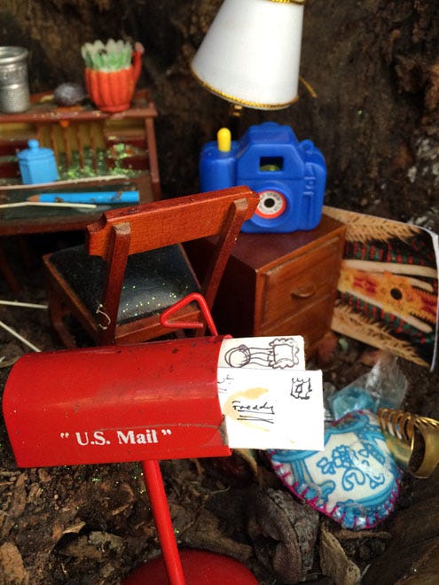 Nestled in the knothole of an old tree, the office has the original furnishings, including a miniature mailbox, a desk, a bulletin board, and even a lamp that illuminates at night. The creators expected it to get ruined by the elements, wildlife or invasive passersby, but much to their delight, the post office has actually grown. Over time, visitors have actually added their own pint-size letters, packages and presents.
