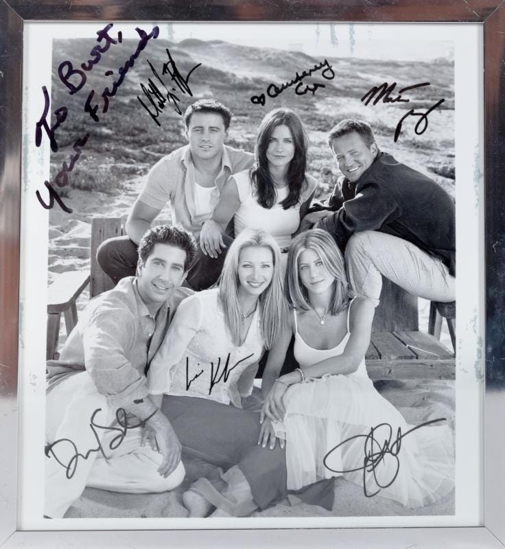 Let’s start with the young guns and nobodies who thank him for being in their presence. I wonder if someone got the ENTIRE CAST OF FRIENDS to sit down and sign their autographs or if they were too big for B-man and some PA wrote “To Burt Reynolds” on a photo that was passed between their dressing rooms?