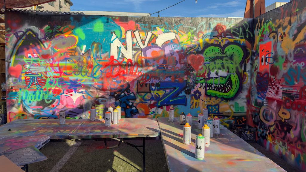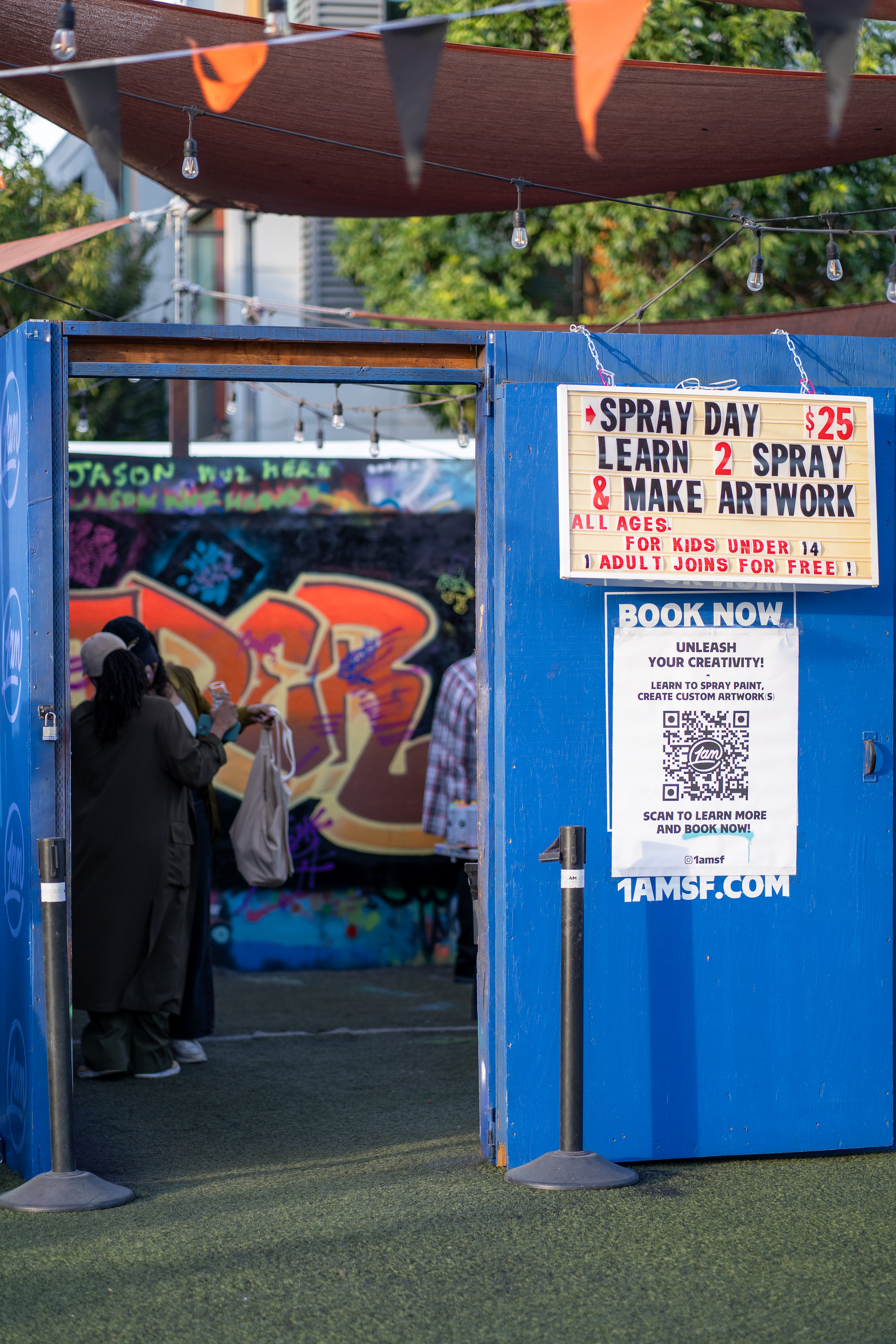 One non-autumn themed activation that caught my eye was a graffiti room put on by a company called 1AM. I spoke with graffiti artist Colt Platt who told me that the gallery was doing art shows at their brick-and-mortar for 16 years until the apartments above them caught on fire. Now they do Saturday classes, open to the public, and Platt is at Spark most days, typically doing private and corporate classes.