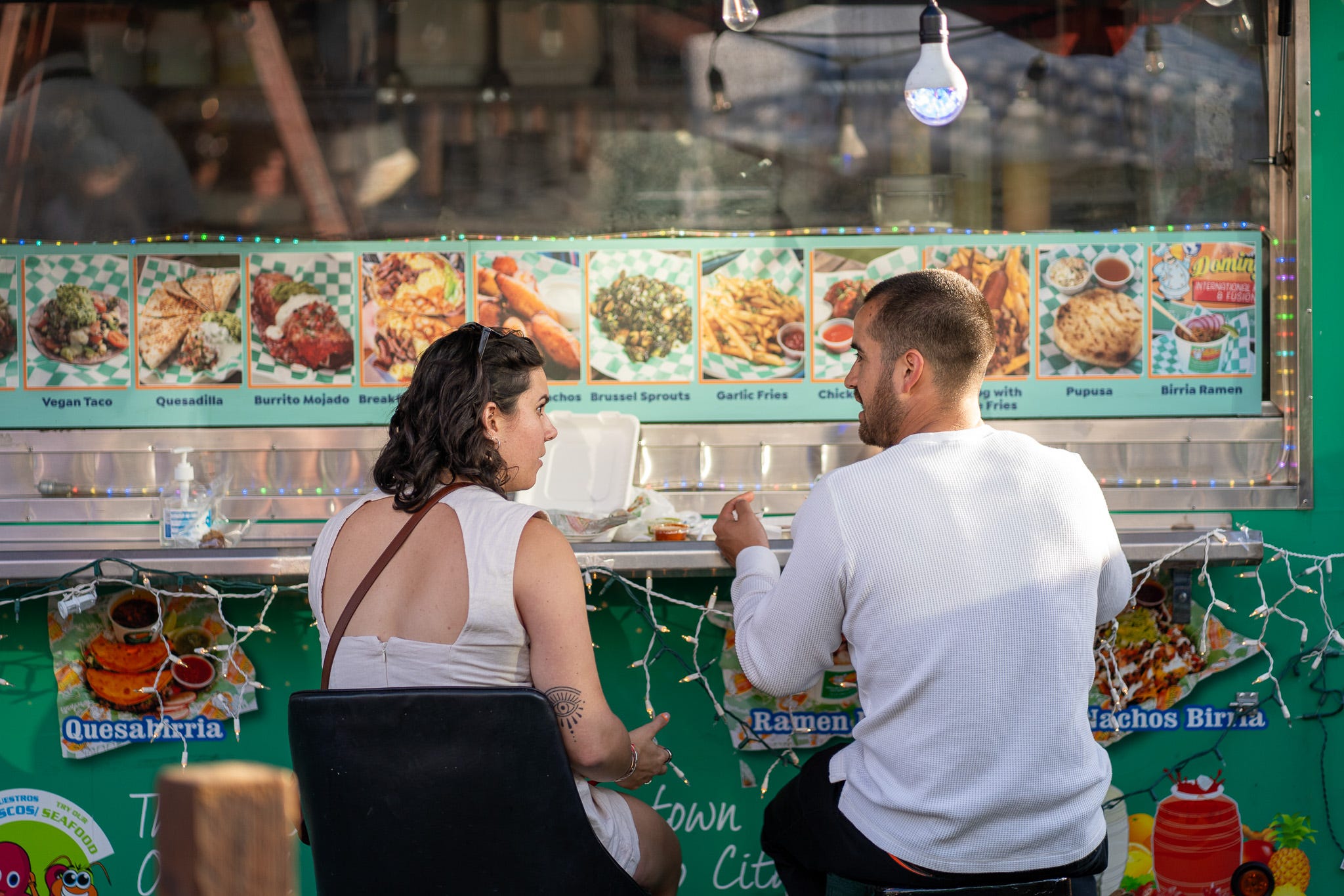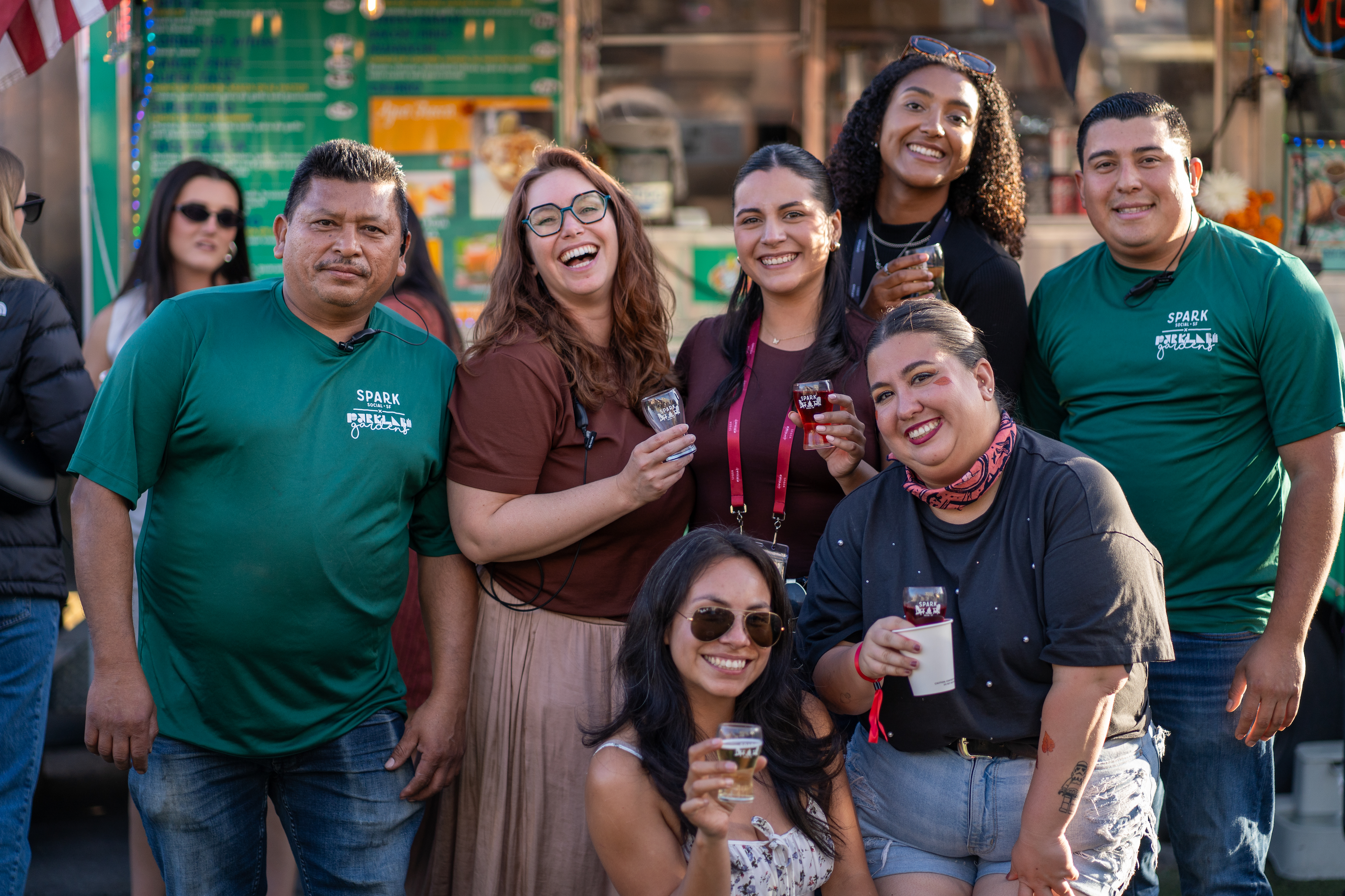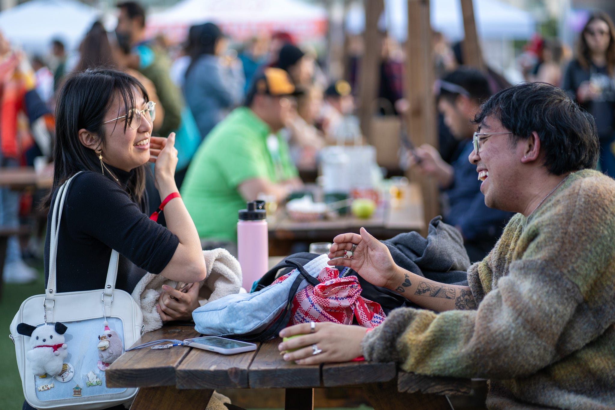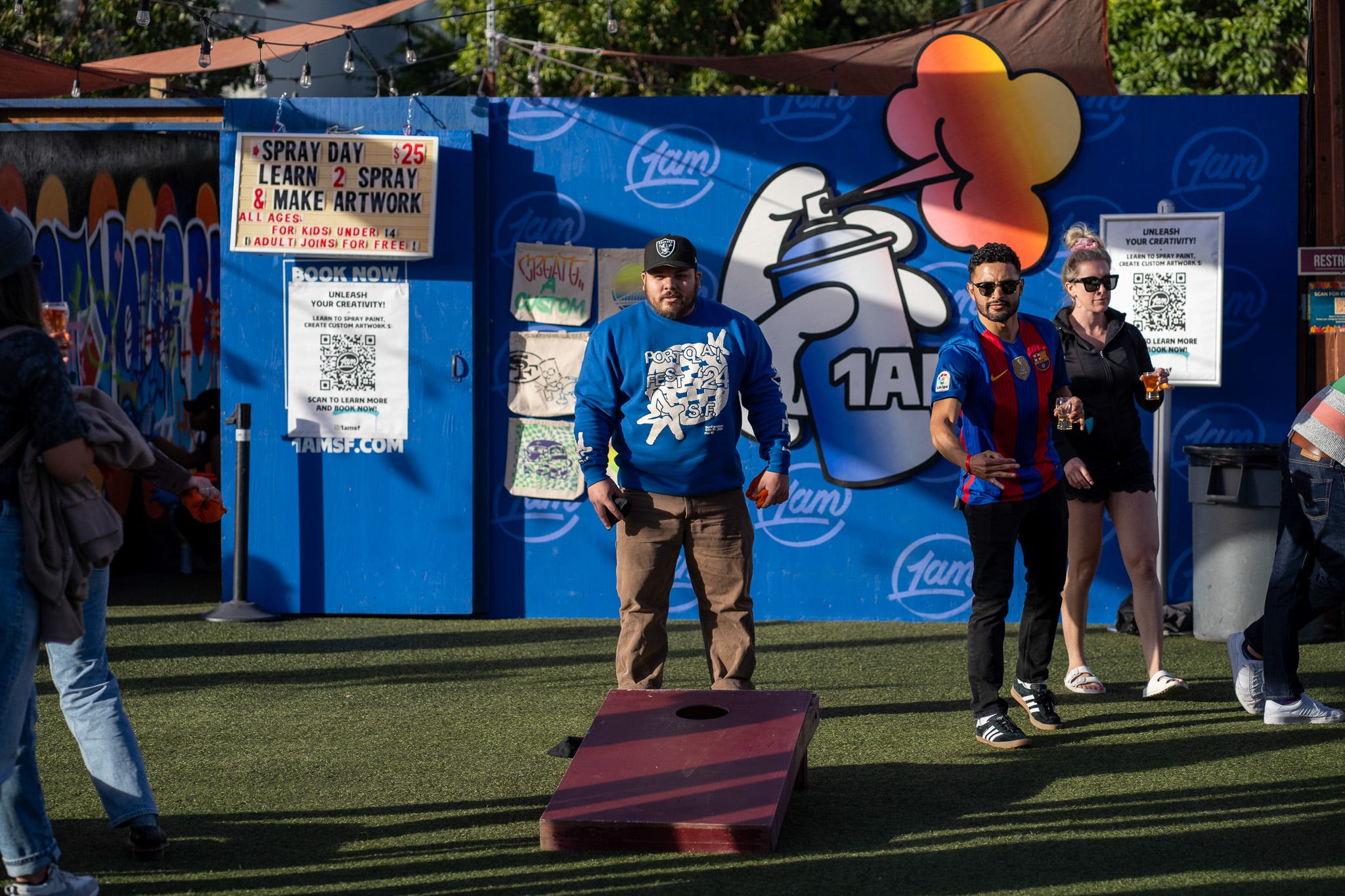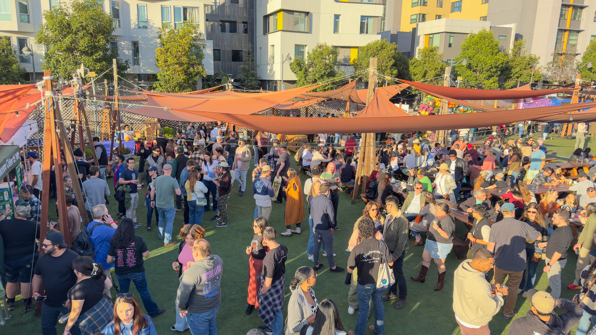SPARK Social SF is an 18,000-square-foot space that offers a rotating selection of 16 food vendors, fire pits, a sangria bar, and a double-decker bus for events in Mission Bay. For Saturday’s event, organizers decked the bus in fall leaves, pumpkins, and hay stacks, and the cider was flowing like the salmon of Capistrano.