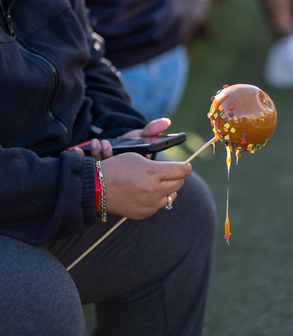 Gourmet candy apples by Far West were complimentary, and the pumpkin pie eating contest was giving Americana comfort vibes. Arman Tafazzoli from San Francisco ended up with a “Pie Gobbler” sash on a dare from his friends. When the band announced that there would be a speed-eating pumpkin pie contest, the group used an iPhone dice app to see if anyone’s first roll was snake eyes, which in this group means you’re obligated to the dare. Tafazzoli rolled snake eyes. A man of his word, he entered the contest.