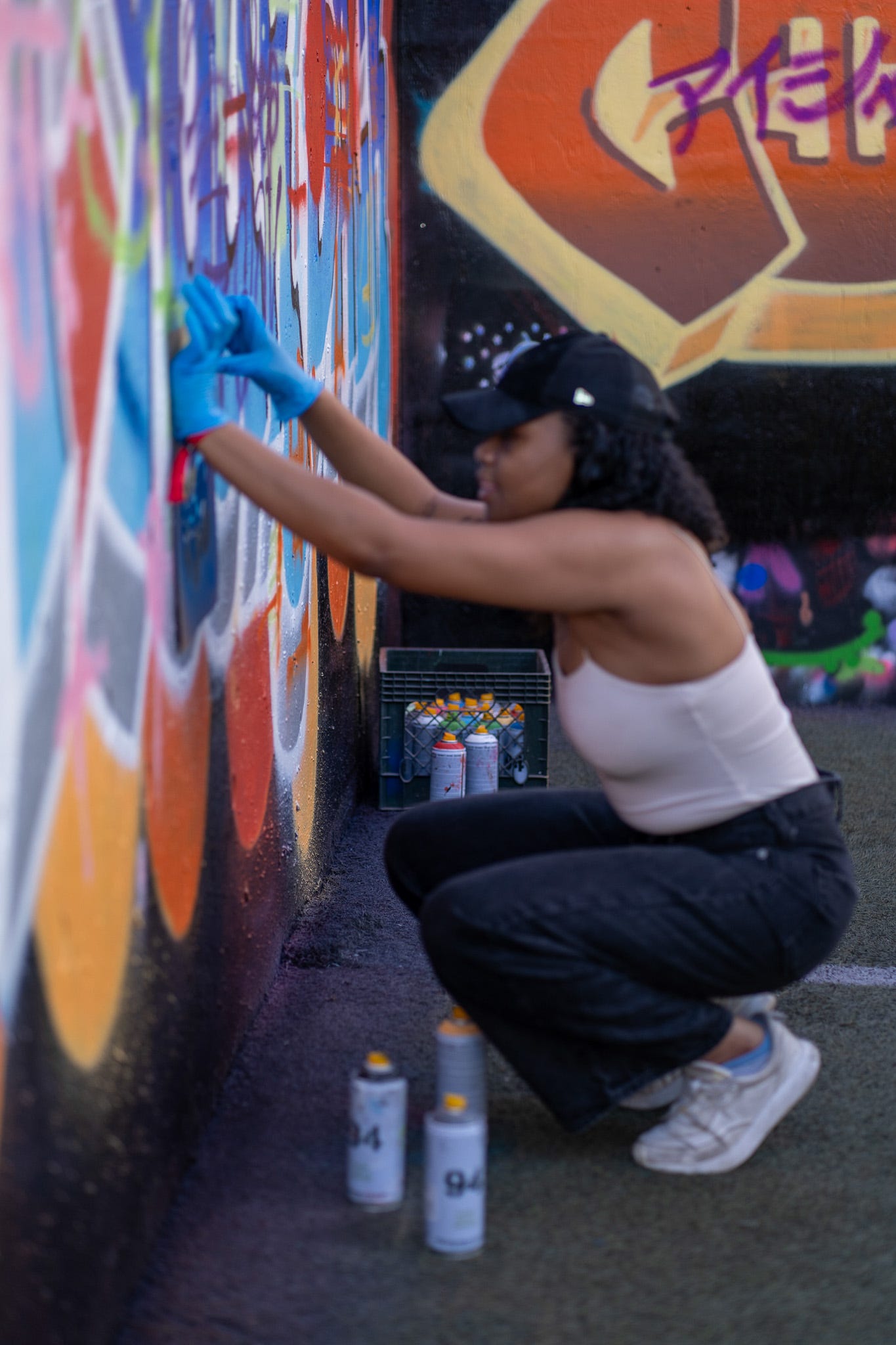 Platt teaches them a little bit about spray painting and then lets them loose. “At the end, we come together and paint a graffiti piece together,” said Platt. “You get to have fun, use the paint in a less-structured way. Then at the end, you get to make a tote bag. And it’s a custom piece of art that you leave with.”