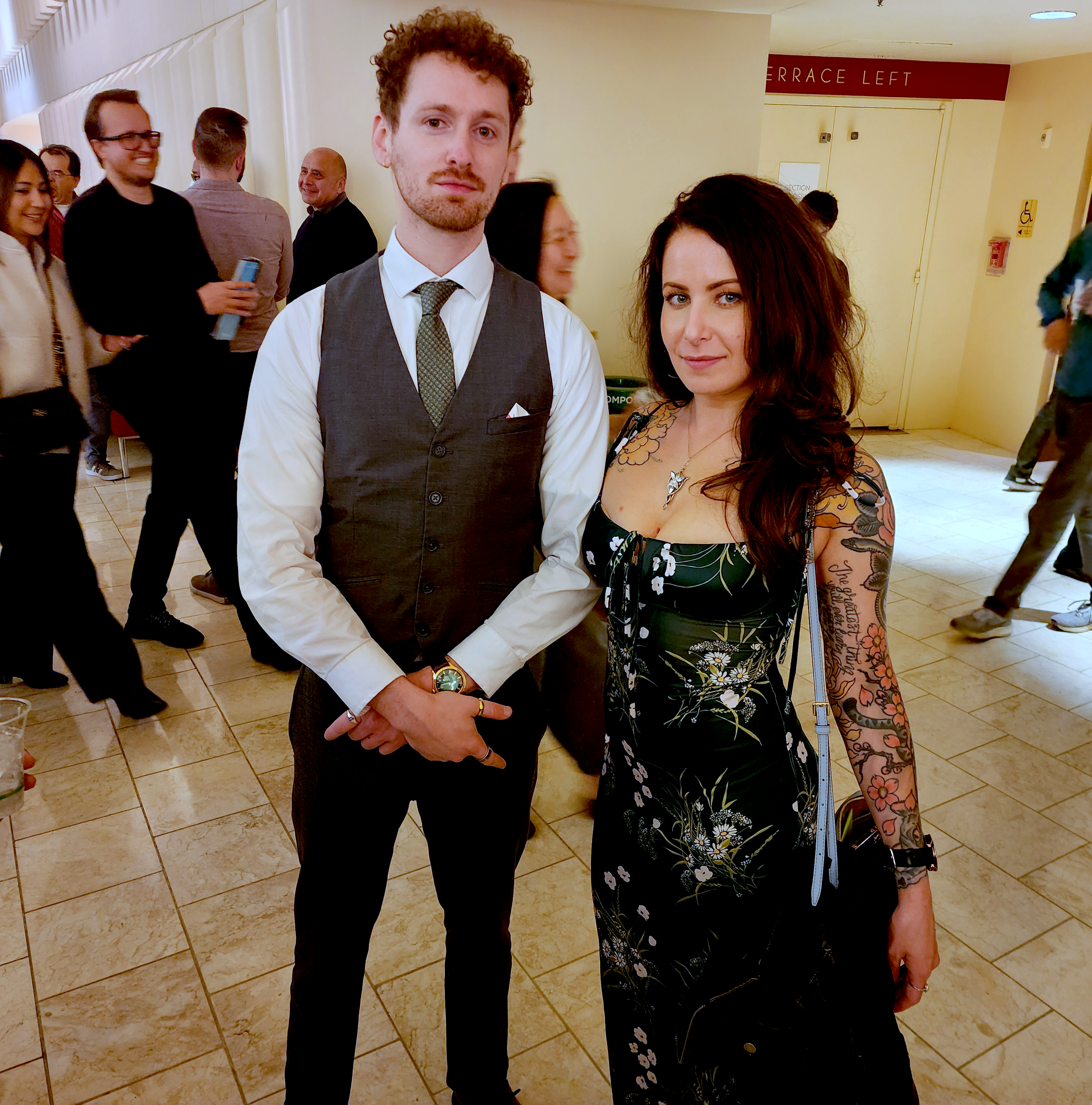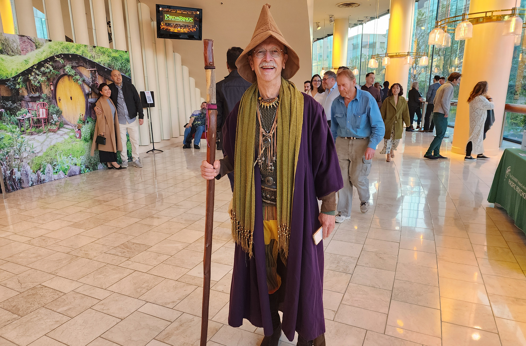 Green hues dominated the evening. A photo station in the lobby invited attendees to don cloaks and stand in front of a lush green Hobbit-like backdrop, akin to the film universe. And of course the night would not be complete without running into David Reardon, San Francisco’s local red carpet addict who had not seen LotR, yet had the perfect outfit for the evening.